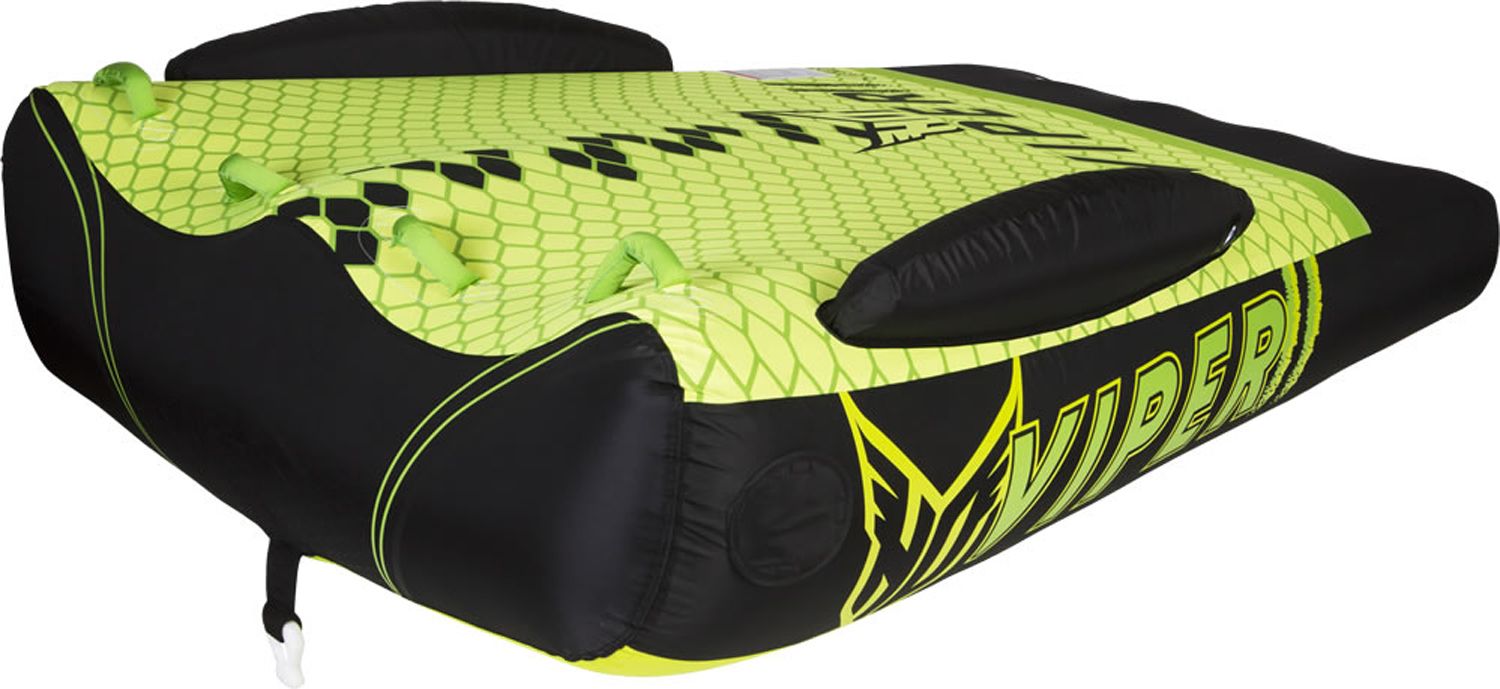 The Viper series brings a new element of fun and comfort to tubing. Its tapered profile puts the riders in a natural riding position and allows for easy re-boarding from the water. The Viper’s extra thick body delivers the most comfortable ride of any deck tube out there. Each rider has a spot of their own on the unique, contoured top while the new, innovative footholds provide relief when you can’t hold on much longer. Softshell technology rounds out the features list making the Viper the tube of choice for your family’s boating needs. Don’t get bit with an imitation...get yourself a Viper today.