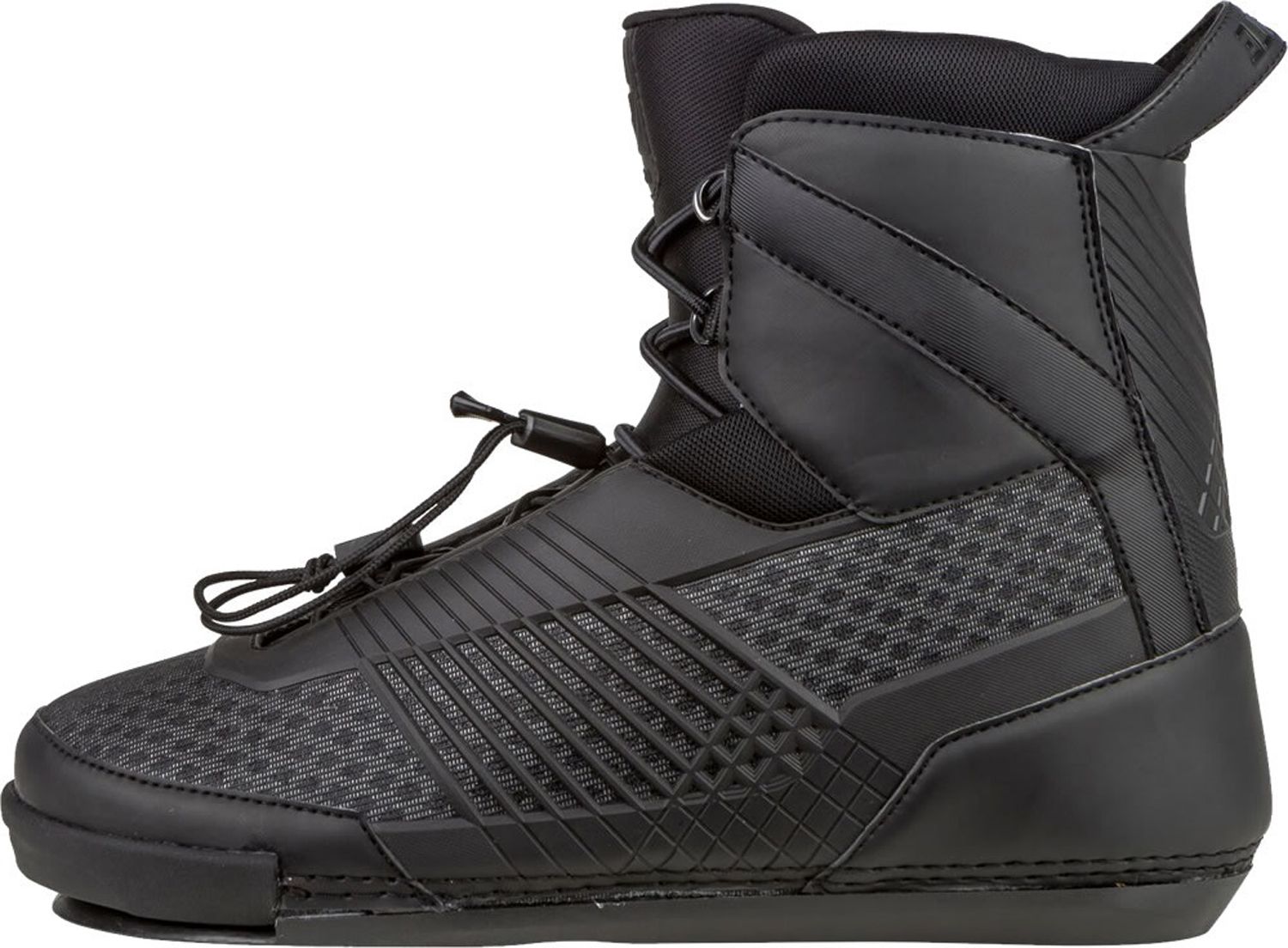 Slalom ski boots are available in two key styles; Open-toe or closed-toe. Majority of modern slalom skis use a ‘traditional’ mountain pattern allowing different brands of boot to be fitted onto any given ski. 2017 and earlier HO skis with D.C. (Direct connect) inserts must be mounted with HO D.C. style front and rear boots. Those wishing to mount Radar boots to their 2018 and later HO ski must use an aluminium rear plate. BOA slalom ski boot variants replace traditional lower laces with a BOA lacing system for fast, efficient closure.