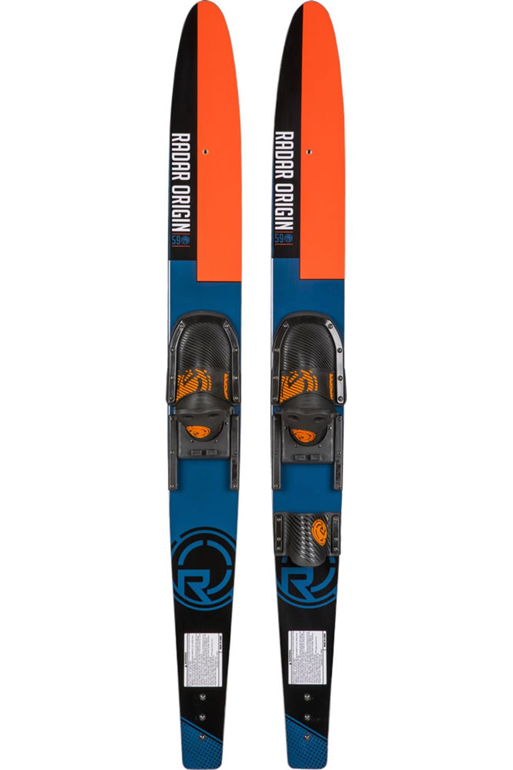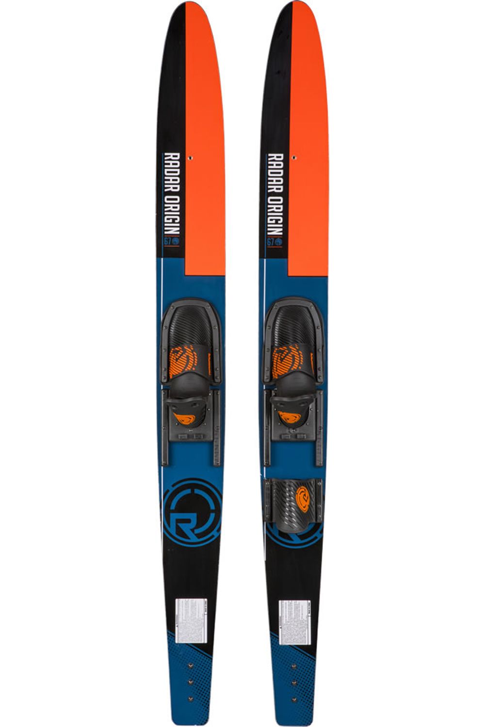Combo skis are designed for beginners and come in pairs with a front boot on each and a rear toe plate on one, giving the skier the ability to drop a ski and slalom. Most combo skis include traditional adjustable horse-shoe style binding systems however premium models feature a supportive, comfortable boot system. While nearly all adult combo’s include inserts for a trainer bar to be added later, kid’s trainers come with the trainer bar, rope and handle included. Combo skis are available in varying widths of narrow and wide. Wide combos with more surface area will provide easier deep water starts and more straight-line stability once up. Narrow combo’s will be nimbler once skiing.