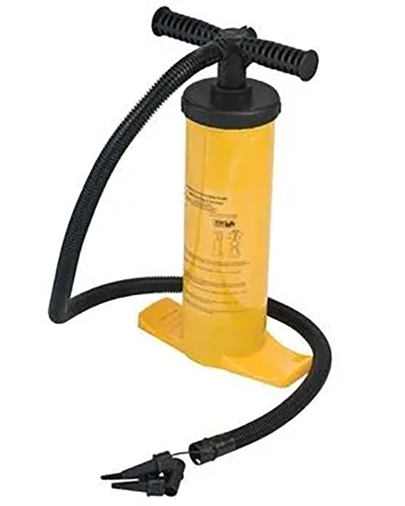 Pump up your inflatable with this 2000cc Double Action Hand Pump. Inflatable tubes, water rafts, boats, kayaks, water wings, rubber duckies-this hand pump has multiple nozzles to inflate or top up nearly anything to the recommended pressure. Bring it along on your trip to top up on the water.