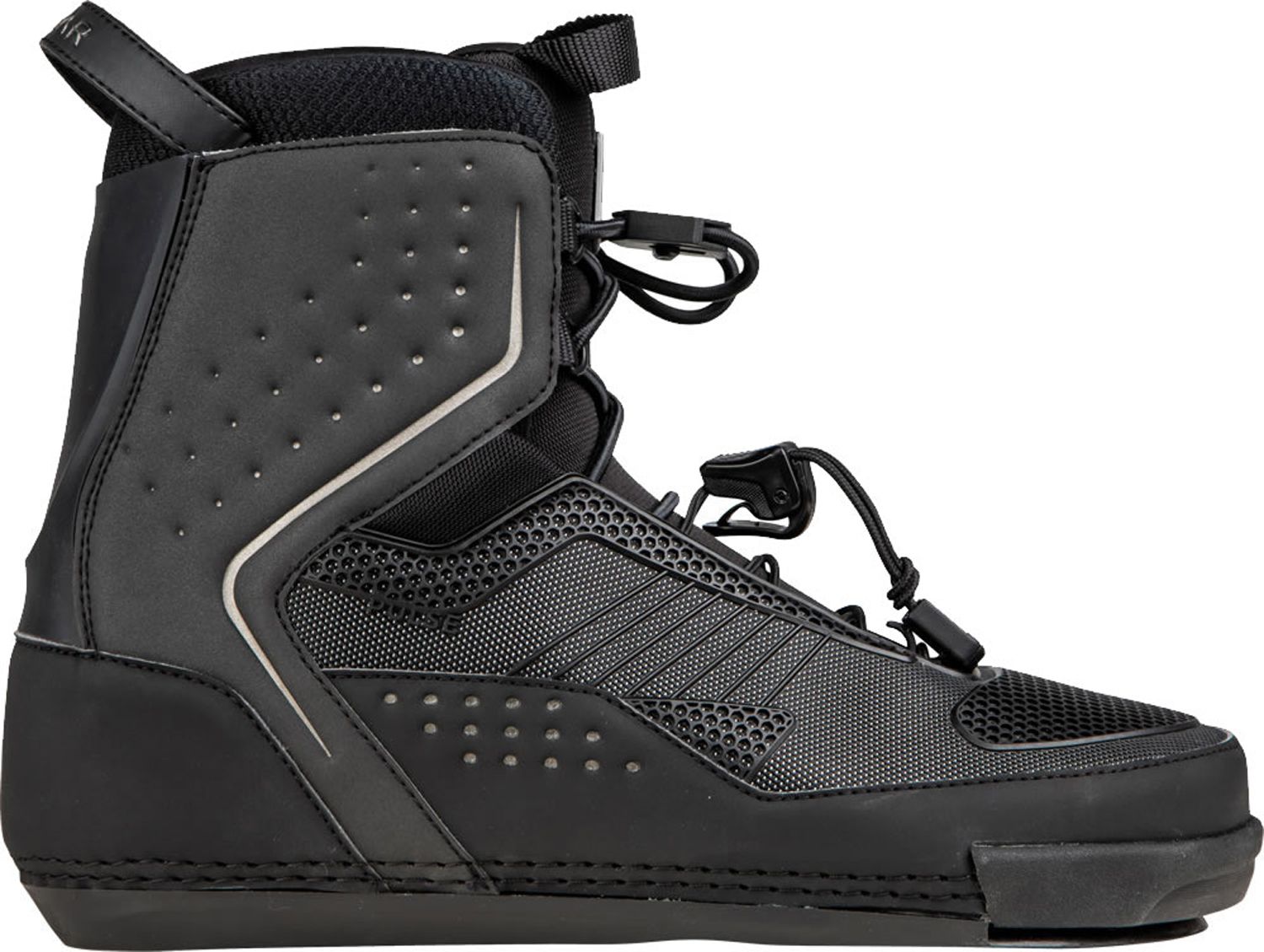 Slalom ski boots are available in two key styles; Open-toe or closed-toe. Majority of modern slalom skis use a ‘traditional’ mountain pattern allowing different brands of boot to be fitted onto any given ski. 2017 and earlier HO skis with D.C. (Direct connect) inserts must be mounted with HO D.C. style front and rear boots. Those wishing to mount Radar boots to their 2018 and later HO ski must use an aluminium rear plate. BOA slalom ski boot variants replace traditional lower laces with a BOA lacing system for fast, efficient closure.