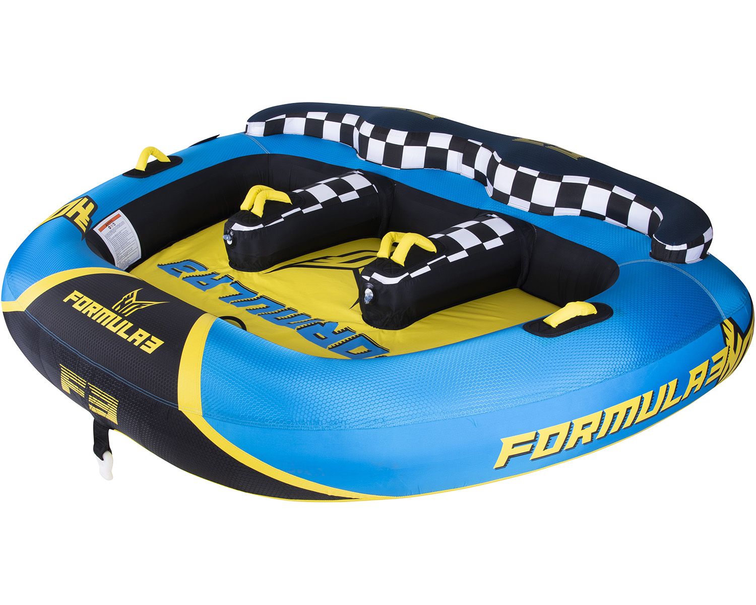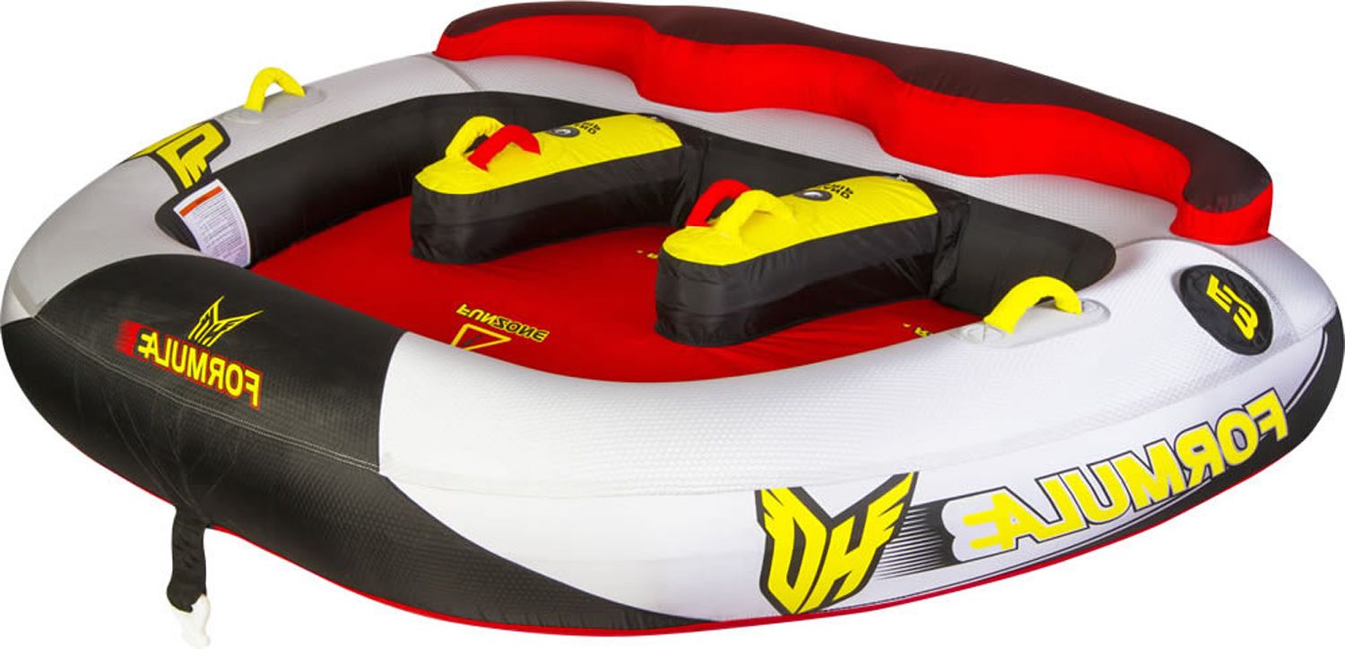 The Formula 3 is a fully covered tube that can accommodate 1, 2 or 3 riders! Put up to 3 people in the side by side, secure, cockpit style seats, sit back and enjoy the ride. The squared off back of the Formula 3 makes it stable in the whip while our new one piece floor makes inflation and deflation a snap. Made from the finest materials and backed by our industry leading 1 year warranty, the Formula 3 is sure to be the epicenter of your family’s boating adventures.