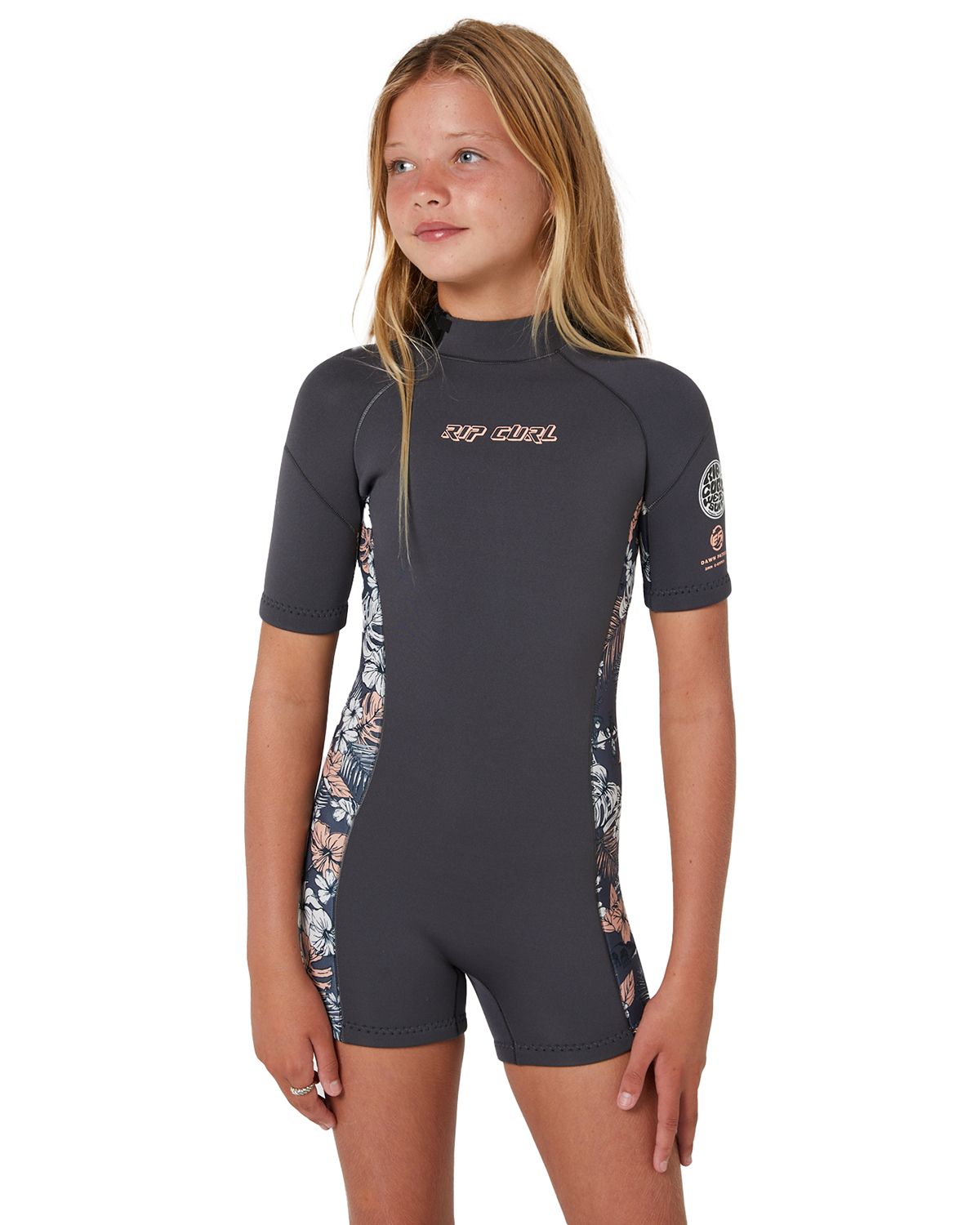 Rip Curl 2024 Dawn Patrol Junior Girls 2mm Back Zip Short Sleeve Springsuit