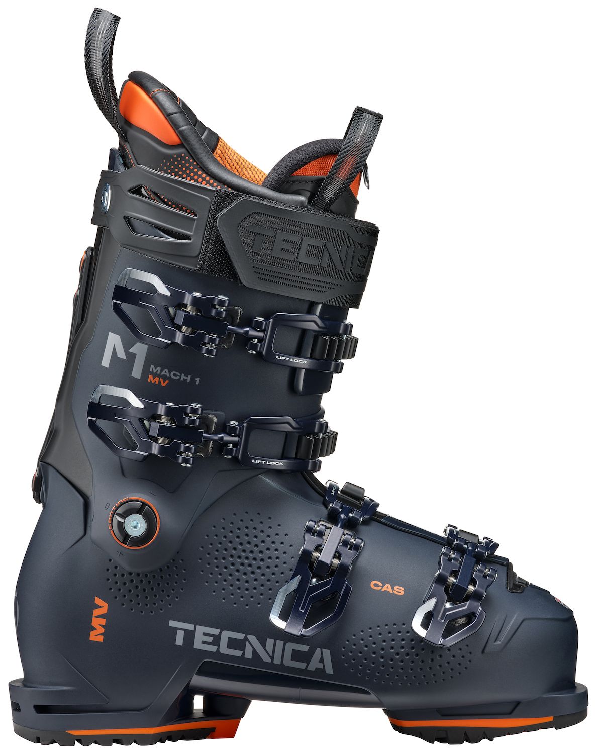 Made for those who get out there whether the snow gods have delivered or not, the Mach 1 MV 120 TD is a high-performance ski boot designed for advanced level skiers with medium-volume feet who are looking for all-mountain performance, a comfortable but precise fit and a high level of customization. Grounded in the fundamentals of high-performance ski boot design, the MV 120 features T-Drive technology which is a revolutionary shell to cuff connection that allows the boot to function in a much more efficient way. This results in a smoother more consistent flex, better performance and less energy required to ski at a high level. When you add the Asymmetrical Power Transmission shell and cuff design to the equation you get a precise feeling boot that is completely at home in any type of terrain or snow condition. Fit is priority number one in the MV 120 and Custom Adaptive Shape C.A.S. technology is the way we achieve it. Developed with an anatomically shaped shell and liner, the C.A.S. technology provides a great fit right out of the box but allows the boots to be fully customized if need be. Ski it all and ski it well.