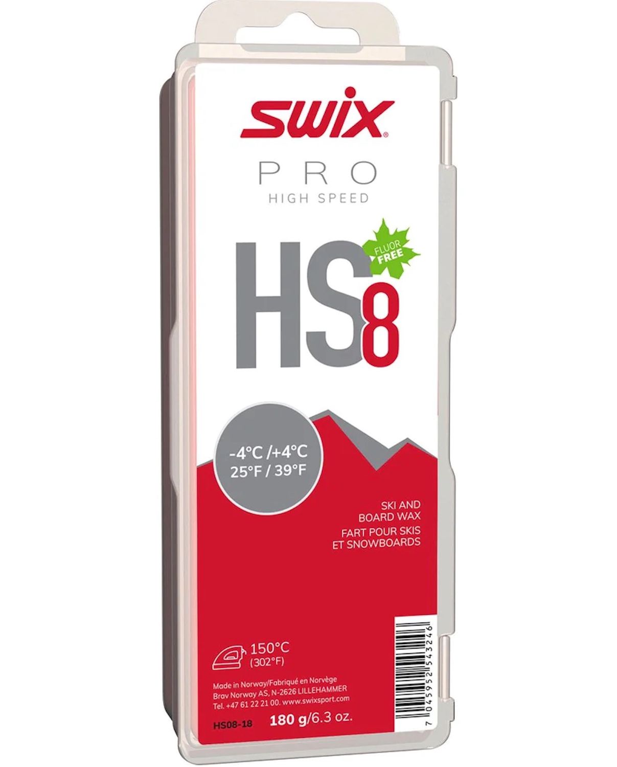 HS8 is a popular high-quality glide wax for both base preparation and training. High Speed (HS) is specially developed for younger racers and the ambitious leisure skier. All waxes in this series have high performance and good durability. This makes them an affordable option for both competition and training. HS8 is easy to melt and very convenient to work with. It is equally suited for both training and racing.