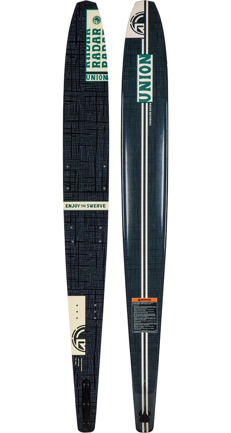 The Union is the undisputed favorite around the Radar Headquarters due to its easy to ride ability without sacrificing any performance. Extra width allows you to ride the ski at slower speeds and improve at a rapid pace. This ski performs amazingly well between 24-32 MPH and will have you making endless turns on the lake all day long.