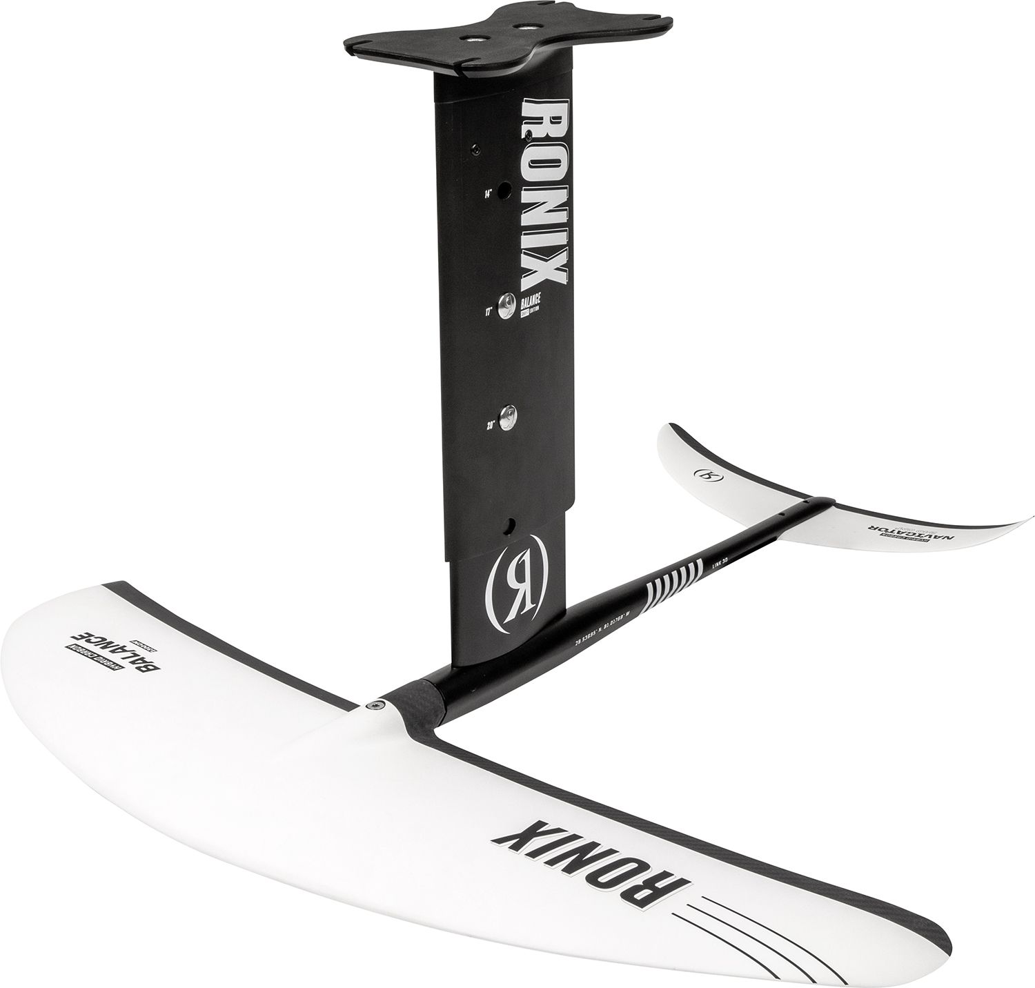 Never before has flight been so easy, and so much fun. The Balance Front Wings provide a nimble turn that will easily roll over to edge with its elliptical outline and additional width. This wing design will quickly set you in the sweet spot, and keep you on your specified flight pattern, and do it with a quicker reacting edge hold. An adjustable mast and a stable wing setup to guide you through foiling’s ups and downs. The first 3-in-1 mast that is adjustable from 14”-20”. The result is the easiest wakefoil on the market. People with no watersports background have an easy time learning to foil with the 14” mast height then quickly graduating to the 17” height position. While more advanced riders can session the second wave in the 20” height position. All the while riding 1 set up.