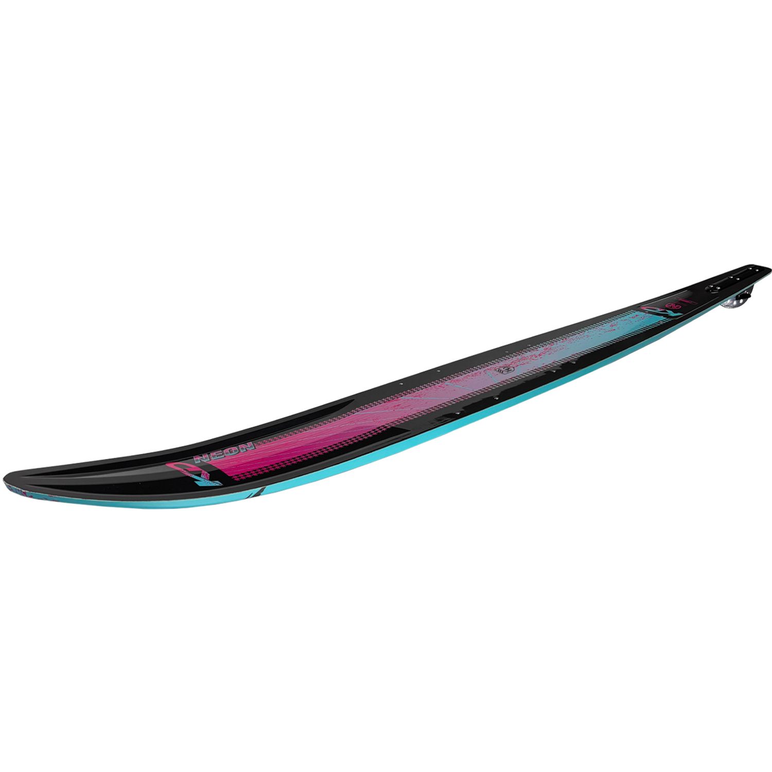 Whilst we use the shape and design characteristics of the Krypton, the Neon is specifically designed to accommodate the skiing style of the women. With its distinctive RCD top deck allowing zones of carbon strips; the Neon delivers all the torsional rigidly and explosiveness but with a softer polyurethane foam celled core that allows the ski to ride deeper, requiring less effort to tighten up the skis natural radius. The rounded bevels on the front section of the ski creates that predictable smooth feel, while the harder bevels and deeper concave under the bindings holds angle and cross course direction. The upgdated KD Neon ticks all the right boxes for the intemediate to advanced skier that wants a ski that performs as good as it looks!