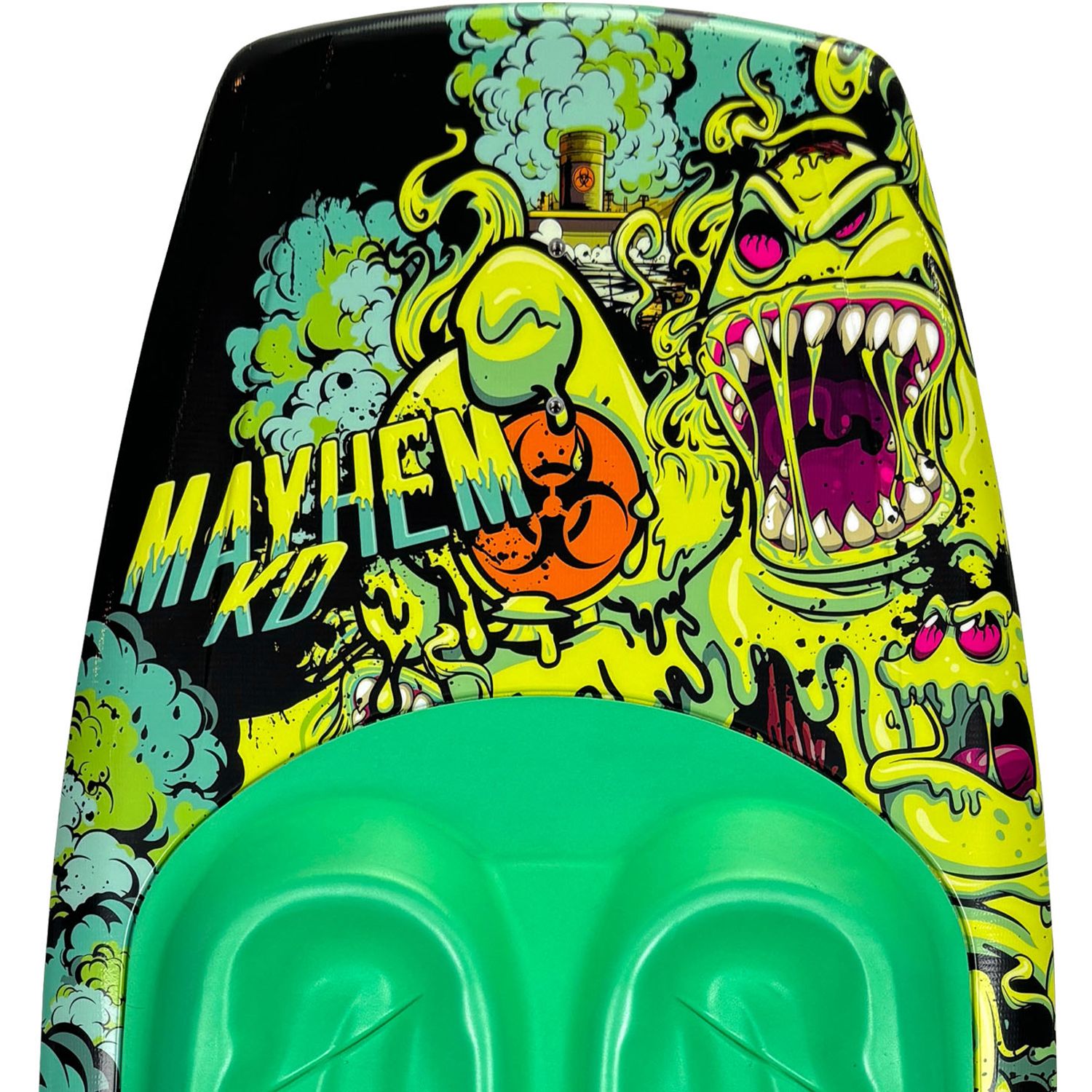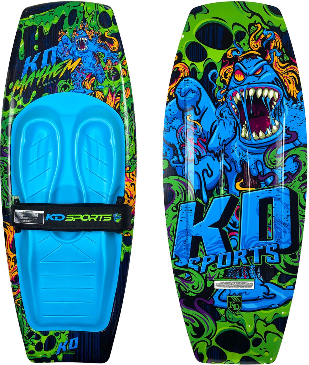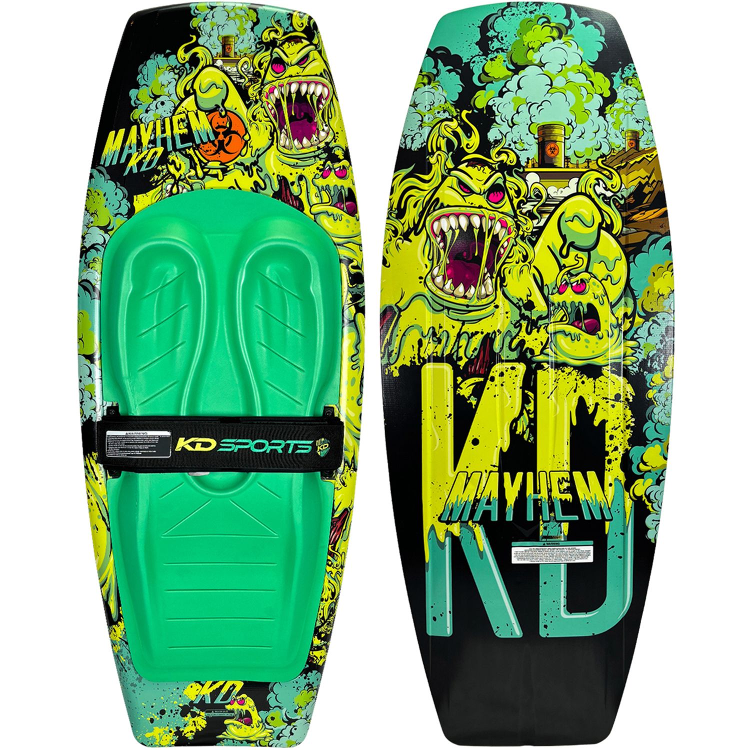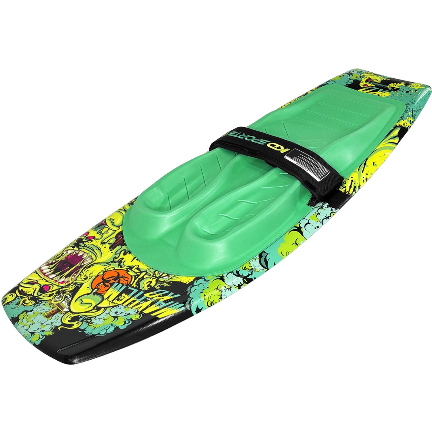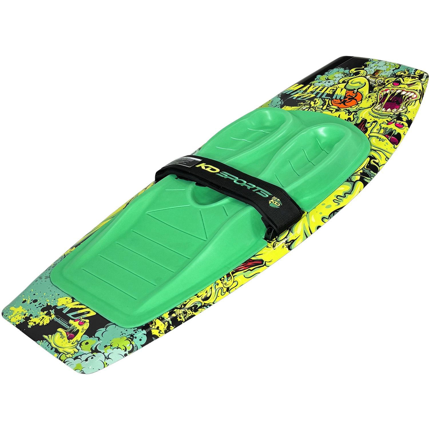 The KD Mayhem comes fitted with a free tow handle hook to take the strain out of deep water starts. Free from moulded fins, the Mayhem features KD’s ‘Diamond Technology’ that generates lift by forming pockets of air under the front/back of the board, for the lowest drag coefficient. Not content until it was perfect, KD rolled and fluted the Mayhem tail, reducing the amount of wear/tear on the board and creating the cleanest, most consistent kick off the wake. An ergonomic pad featuring specific moulded zones for tibia/fibula and a raised section to give support under the legs, taking pressure off the ankles make the Mayhem the complete package!