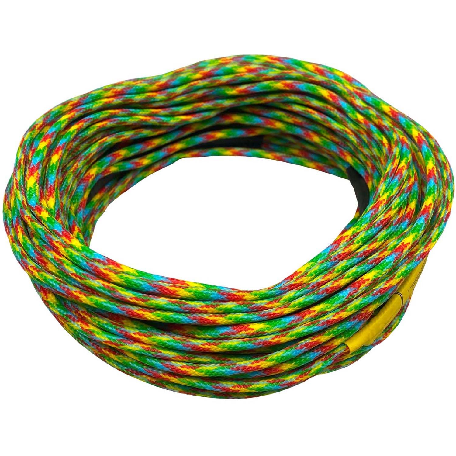 Wakeboard ropes are available in Poly E, Dyneema or Spectra constructions. Poly E is a low-stretch fibre that is forgiving, inexpensive and commonly used for water ski and tube ropes. Poly E ropes are suitable for beginners however may become problematic for intermediate and advanced riders due to its inherent stretch. Poly E ropes are typically available in maximum lengths of 65’ with a limited number of sections. In contrast, Dyneema and Spectra are no-stretch fibres that offer incredibly high breaking strengths and are covered with a silicone or plastic jacket for durability, waterproofing, floatation, and colour. They offer a significant performance increase over poly E ropes due to their lightweight, no-stretch characteristics. Dyneema and Spectra ropes are available in maximum lengths of 80’ with between 4 and 8 sections.
