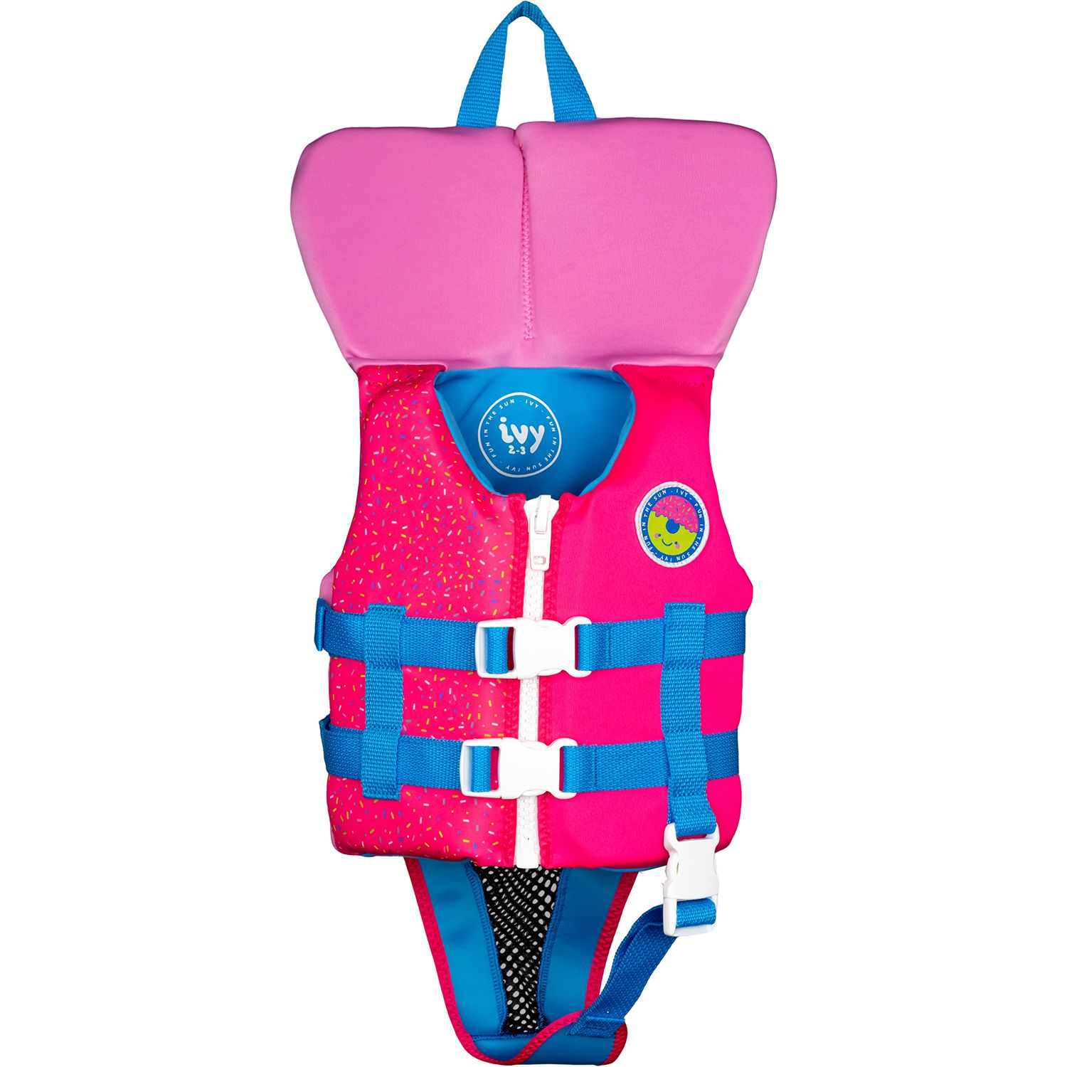 Ivy's most popular design is the only kids vest that has a side adjustment panel so it will last for years as your child grows. Made of our eco-friendly airprene, this vest is lightweight and comfortable which is key when it comes to kids wearing life vests. Our bright, sublimated graphics are easy to see in the water, and the built-in safety seat secures the vest on your child and prevents it from riding up while they are in the water. This Ivy vest even comes complete with a neoprene safety pillow for added head support and comfort for your little one.