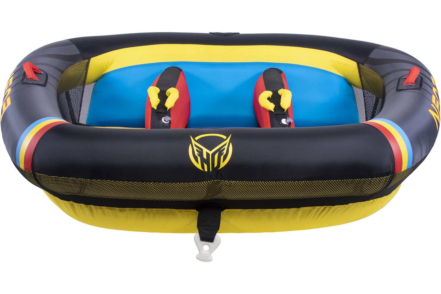 HO Sports is proud to introduce the all new NEO 3 & 4 towable tubes. Our exclusive EXO FRAME TECHNOLOGY utilizes a perimeter ring which provides the same strength as a traditional tube while using less material, making the tube lighter & easier to manage. The heavy-duty, snag resistant mesh windows give the riders the sensation of being closer to the action while the cockpit style seats provide an ergonomic, secure tubing experience for all ages. The open mesh design acts as a natural drain for water entering the tube, preventing sitting water in the tube to provide a faster, more comfortable ride.