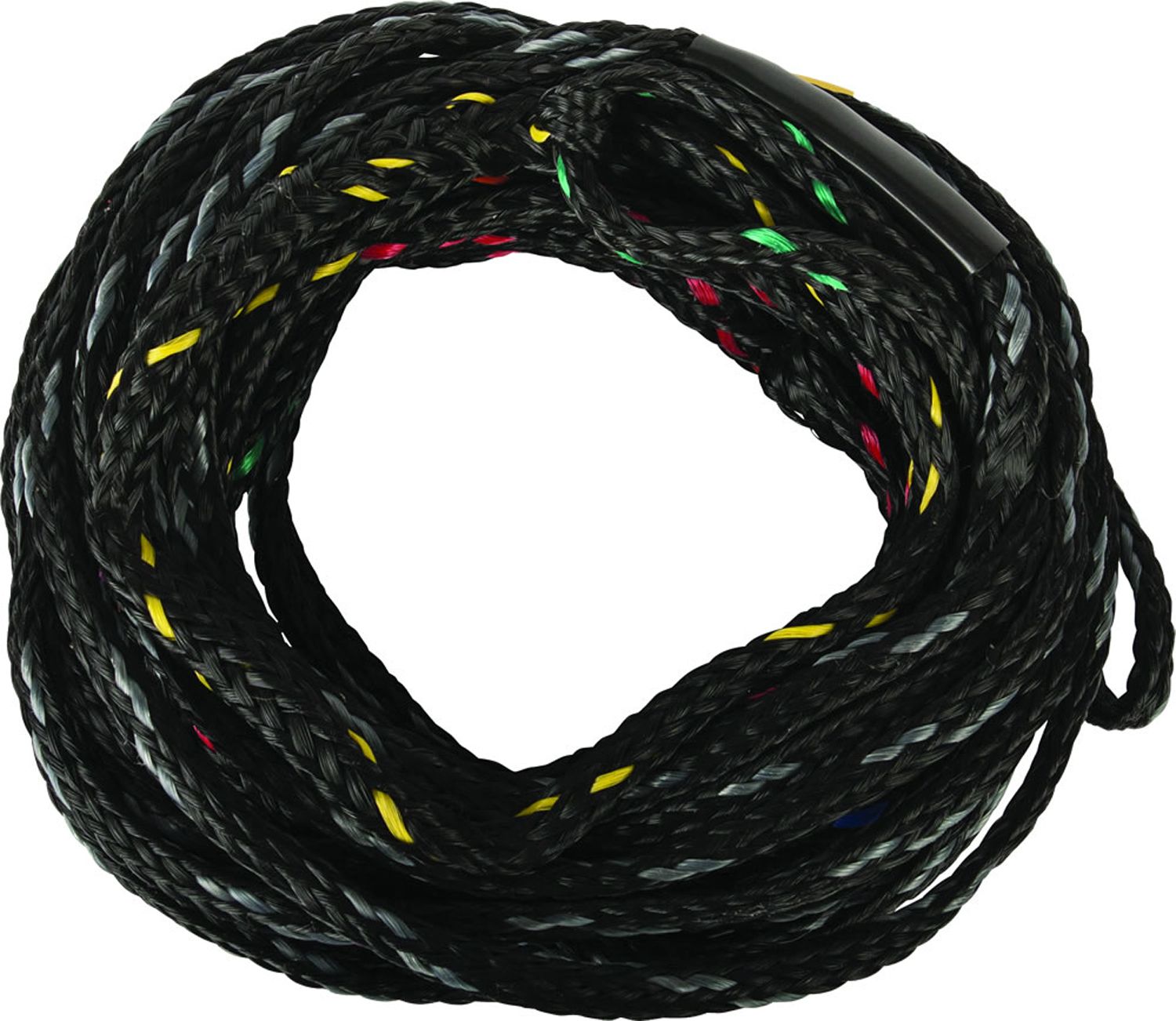 The Syndicate Knotless Mainline is just that, knotless. This means you'll never have to smack your rope on the side of your boat to get to that line length that seems now inaccessible due to rope knot lock-up. The knotless mainline seamlessly connects on each look with itself, no knot needed. This also increases rope life, so you can enjoy one rope for much longer. Our spiral weave construction eliminates rope twist and reduces water retention. This means a lighter, less waterlogged rope that gives you the all the length you deserve each pass. The Syndicate Knotless Mainline is also GUARANTEED ACCURATE! Every section of every line is double-checked for accuracy in our Snoqualmie offices in the USA. This 80-strand pre-stretched rope is guaranteed to accurate length requirements or your money back! Lastly, it's got a new oversized handle loop, for easy connection with all handle types and ID sleeved that indicate length from 15'off to 43'off.