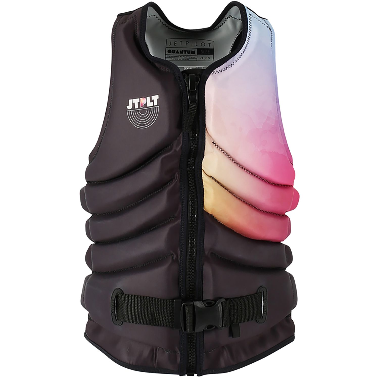 The Jet Pilot Quantum Y Women's life vest has undergone a redesign for 2025, now featuring 100% Ecoprene which is insanely lightweight, durable and has a soft outer shell but best of all is made from recycled plastic bottles. This innovative design includes oversized armholes, along with ergonomically designed segmentation to allow for ultimate freedom of movement. Additionally, this life vest is L50s Australian Standards approved, ensuring maximum safety and protection for the wearer. Perfect for your next wakeboarding or water skiing adventure.
