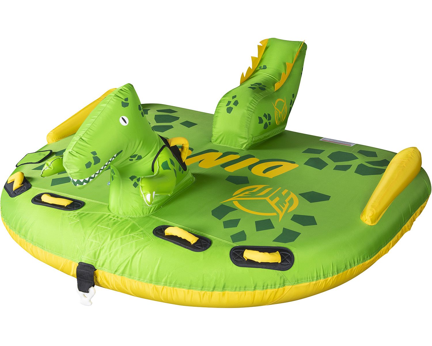 The Dino is a 3 rider towable tube built for fun days on the lake. The Dino can handle up to 3 riders but it can be ridden by 1, 2 or 3. The center rider sits on the deck of the tube while the outside riders lay in the prone position. Built with only the finest materials and guaranteed with HO's 1 year warranty, this tube will keep you where you want to be…on the water.