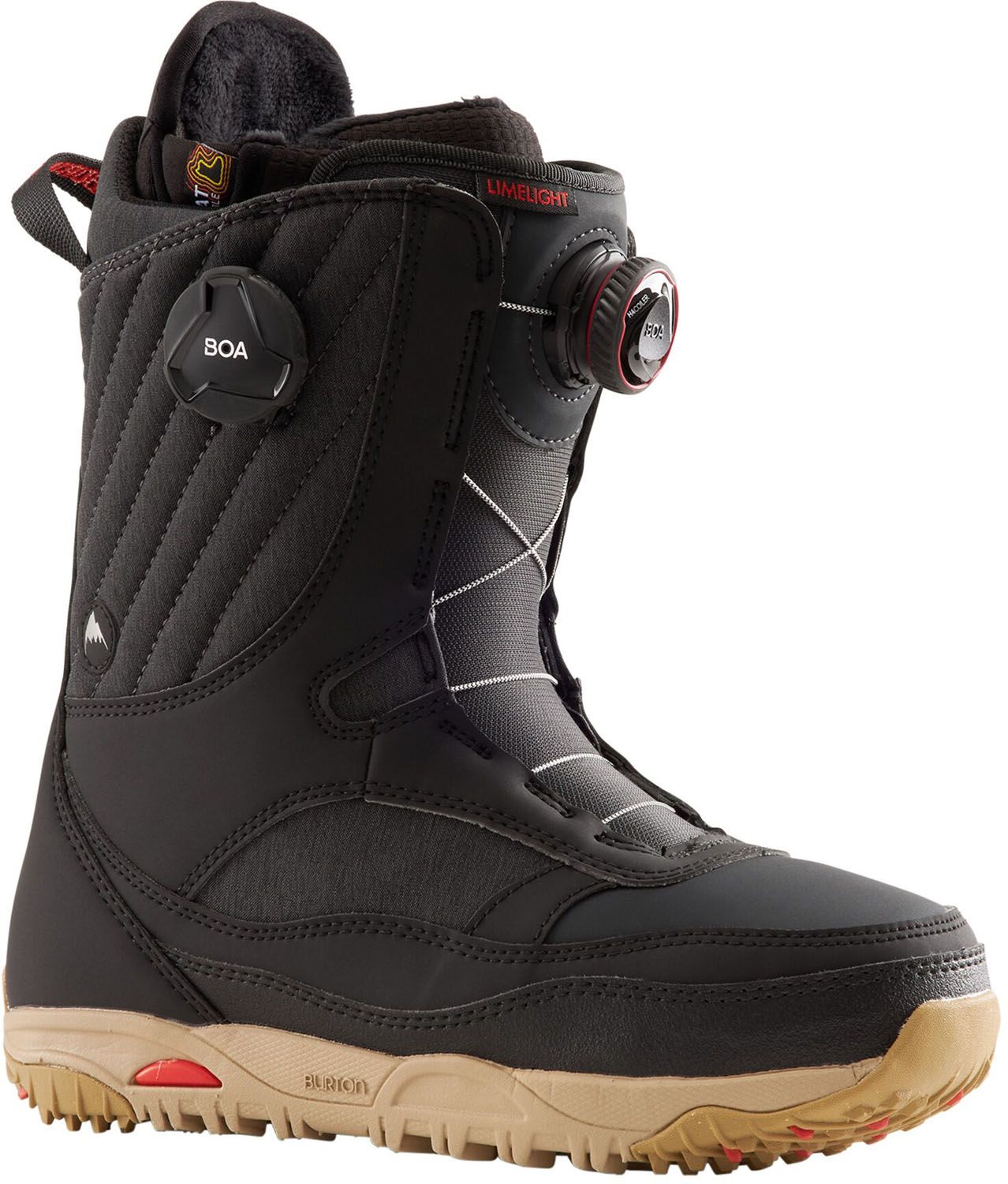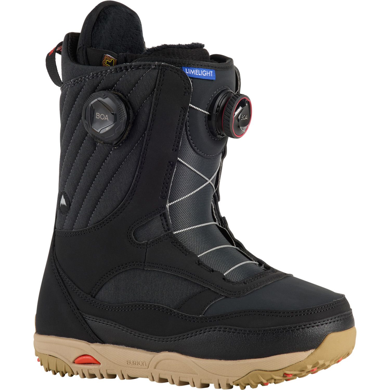 Shine Bright with Total Comfort and Total Fun. Jib, butter, and carve the day away with foot-hugging comfort right out of the box. Talk about everything you need in one boot, the women's Burton Limelight BOA® Snowboard Boots combine user-friendly tech and foot-hugging comfort with a medium flex for an all-around playful ride. The ability to evenly snug the entire boot improves comfort and responsiveness. And say hello to warm feet and the kind of comfort that leaves you focused on what run you're gonna do next.