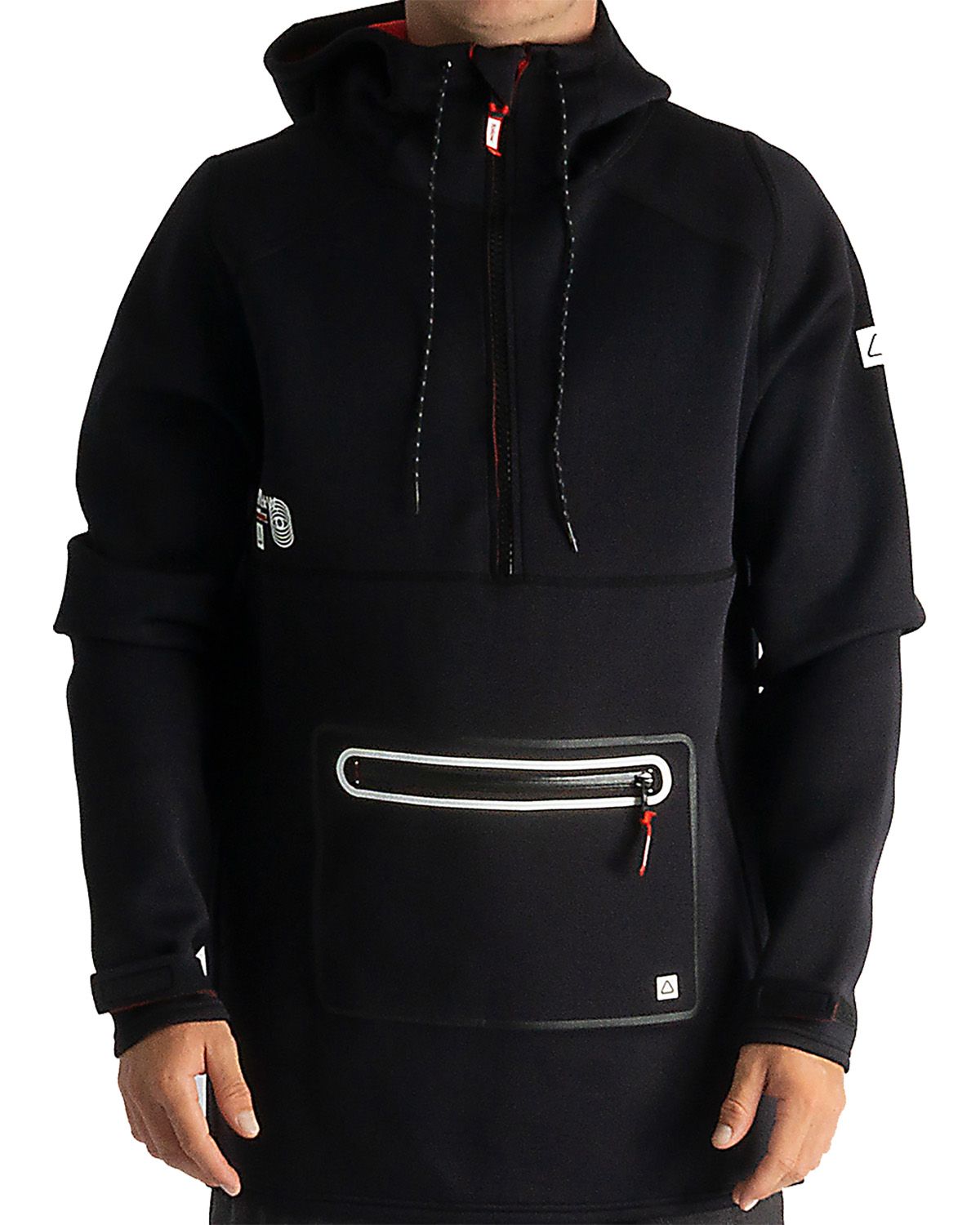 The Anorak combines modern aesthetics with technical innovation. Crafted using the unique slick European look of the ‘F#*fed’ vest line, this Anorak Quad-S© 2mm 4-way stretch neoprene is built to move anywhere, at any time of year. Velcro Wrist Straps and Lycra Hand Sleeves ramp up the security factor. While the longer back cut for extra protection & multiple Stash pockets, including the huge full-front stash compartment, could house a small to medium sized village and its outlying suburbs.