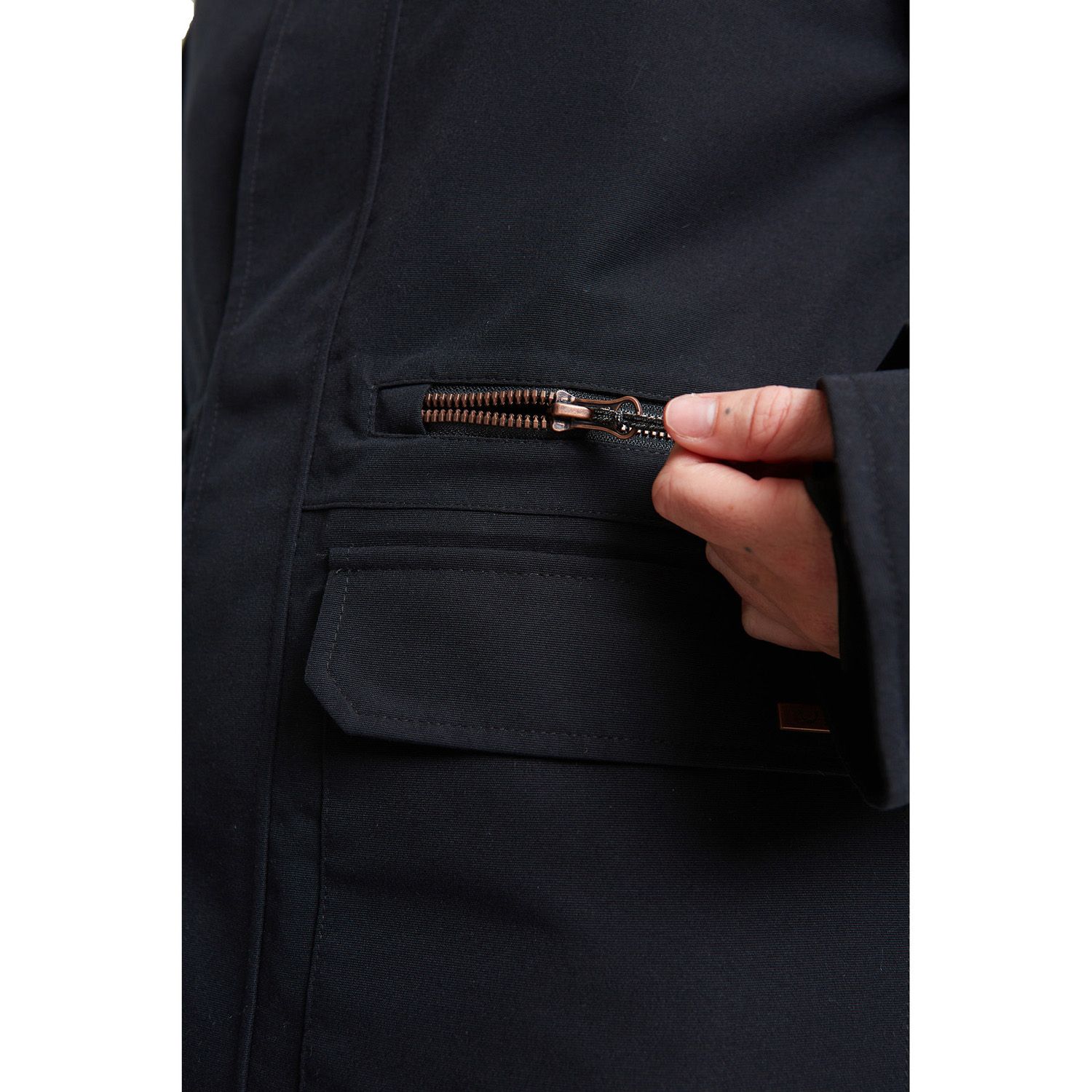 - WATERPROOFING: Refers to the ability of the jacket to prevent water from penetrating through the fabric and getting to your skin or base layers. Snow jackets are typically made of materials and textiles that have been engineered to be highly resistant to water. The waterproofing ability of a snow jacket is typically measured in millimetres and is referred to as the "waterproof rating." This rating tells you how much water pressure the fabric can withstand before it starts to leak. For example, a jacket with a 10,000mm waterproof rating means it can withstand 10,000mm of water pressure before it starts to leak. A 10,000mm rating is a suitable standard for snow jackets, while a jacket with a rating of 20,000mm or 30,000mm is extremely waterproof. A jacket with a high waterproof rating will help to keep you dry and comfortable while you are skiing or snowboarding. In addition to the waterproof rating, snow jackets may also have additional waterproofing features like taped seams, waterproof zippers, and water-resistant coatings such as DWR that help to enhance the jacket's ability to repel water.