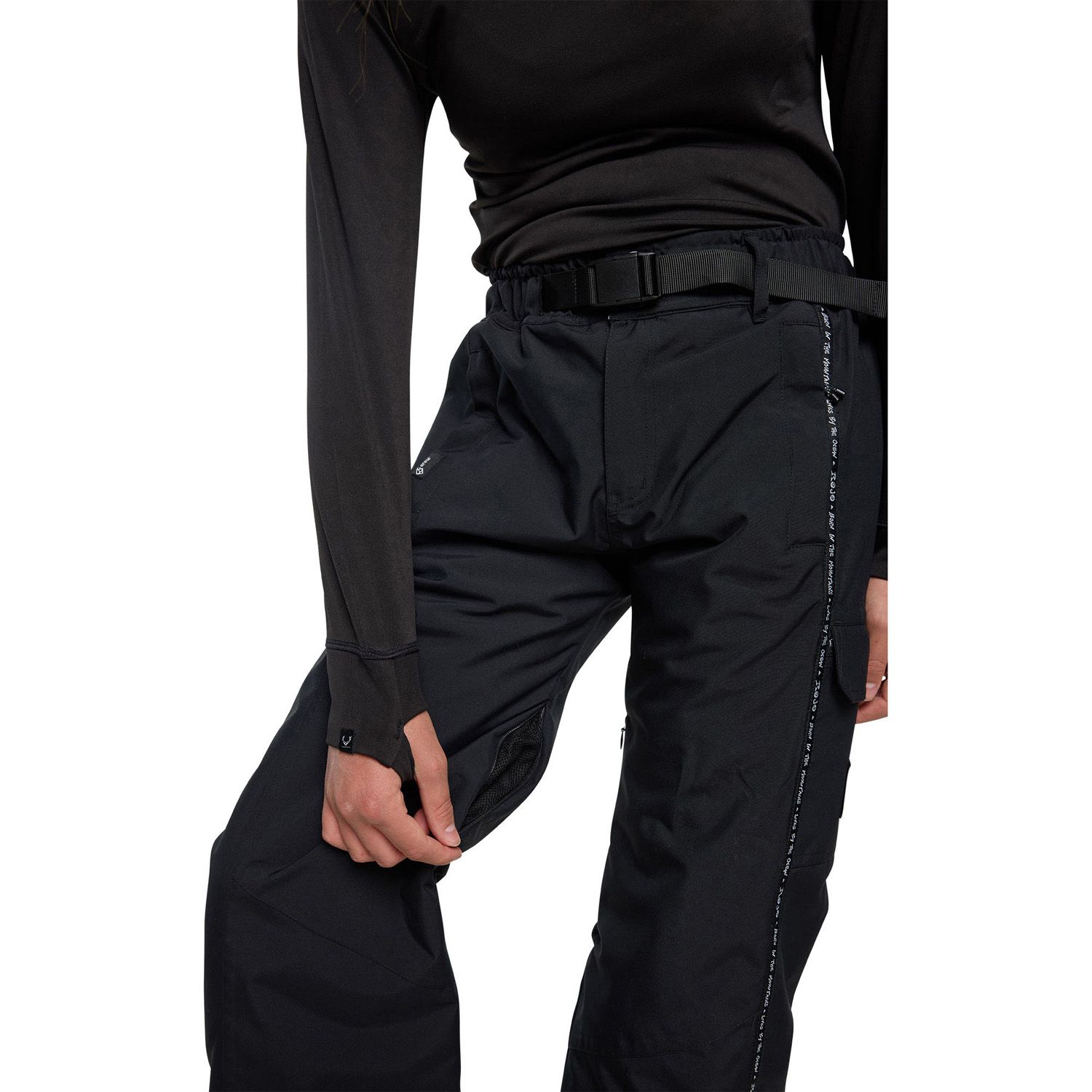 - BREATHABILITY: Refers to the pants ability to allow moisture vapor, such as sweat, to escape from inside. When you are skiing or snowboarding, your body generates heat and moisture, which can make you feel sweaty and uncomfortable. If this moisture is not able to escape from inside the pants, it can make you feel damp and cold, despite pants having a high waterproof rating and heavy insulation. Snow pants are designed to be breathable, meaning they allow moisture vapor to escape while still being waterproof. This is achieved with advanced fabrics and technologies that allow air and moisture to pass through the pants while keeping water out. The breathability of a snow pants is typically measured in grams and is referred to as the "breathability rating." This rating tells you how much moisture vapor the fabric can allow to escape per square meter in a 24-hour period. For example, pants with a 10,000g breathability rating means it can allow 10,000 grams of moisture vapor to escape per square meter in a 24-hour period.