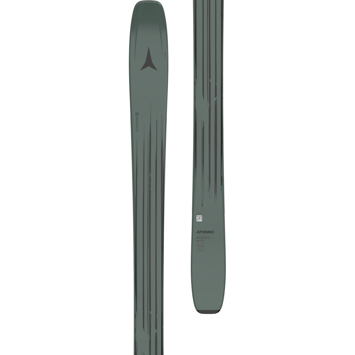 A ski without boundaries, the powerful Atomic Maverick 96 CTI is a wildly versatile all-mountain ski that can handle every slope and snow condition. Smooth and ambitious, the CTI Powered core construction features the perfect mix of carbon and titanal to create the ideal balance of stiffness and flex, delivering improved stability from tip to tail and better snow feel underfoot. Employing All-Mountain Rocker for total versatility and a Power Woodcore for added stability and vibration damping at speed, the 96mm waist of the Maverick 96 CTI offers precision performance on hardpack and beyond. The uniquely shaped HRZN 3D tip offers expanded surface area for more float and versatility in powder and variable conditions. Using a unique balance of wood and metal with less fiberglass and resin, the lower-impact design of the Maverick 96 CTI reduces CO2 equivalent emissions by 16%.