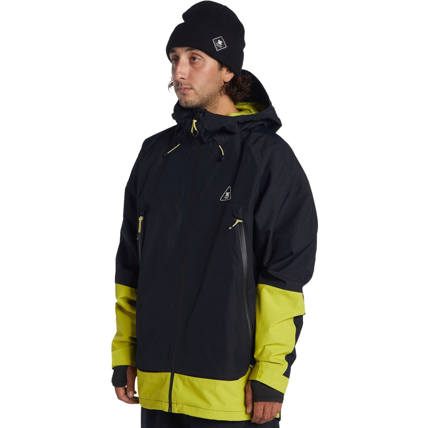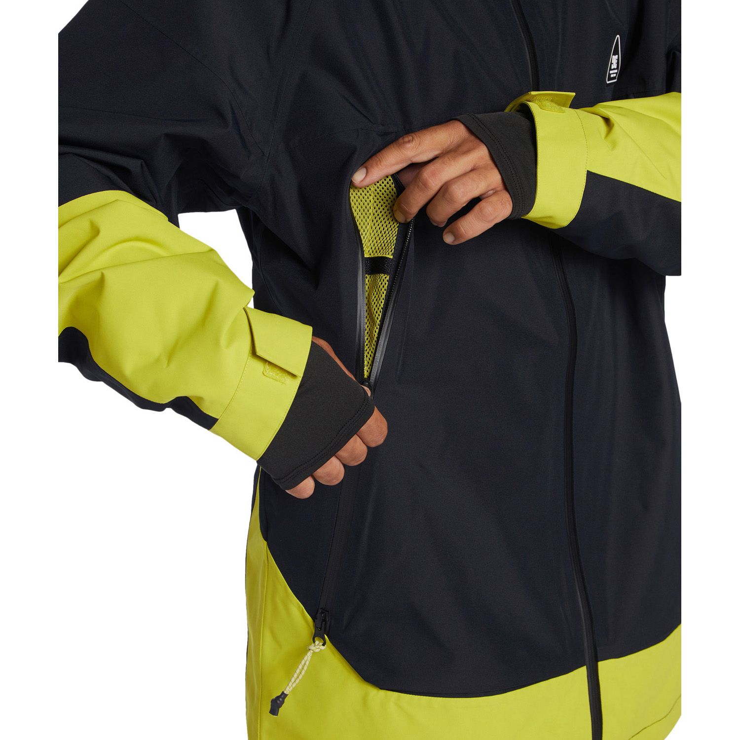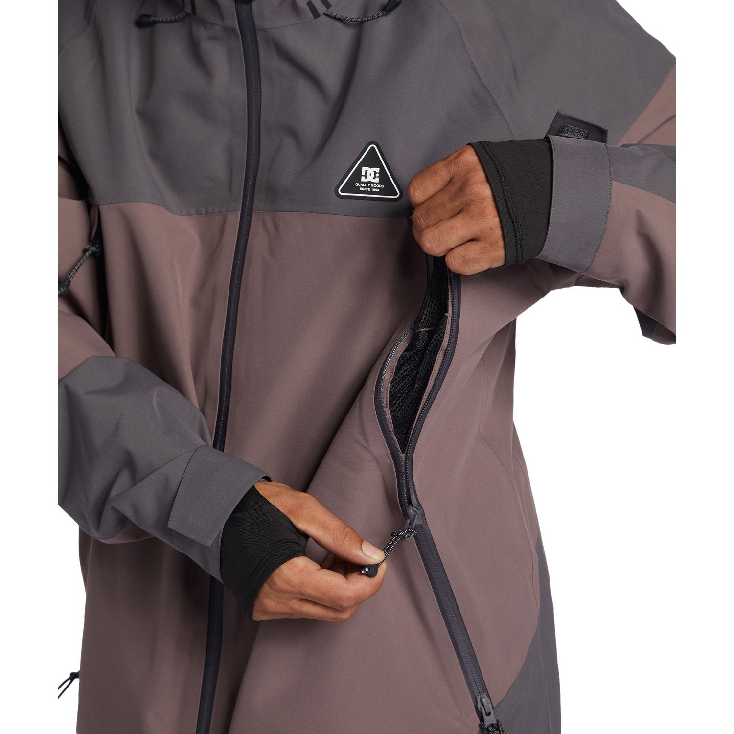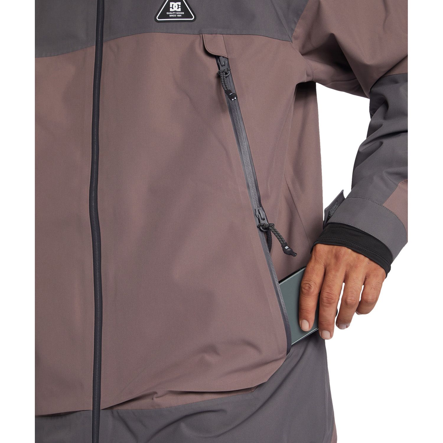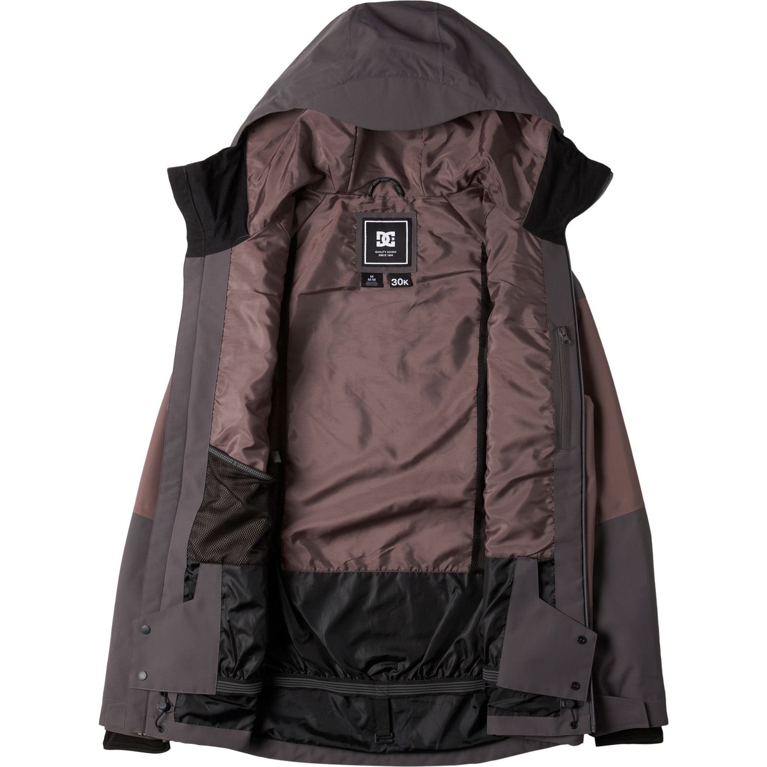 The Intel 30K Snow Jacket is designed to provide exceptional protection against harsh weather conditions. It features DC’s WEATHER DEFENSE 30 technology, offering 30,000mm waterproofing and 20,000g breathability to keep you dry and comfortable. The jacket is constructed from 45% recycled polyester full dull plain weave fabric, making it both durable and environmentally friendly. It has a shell design with 60% recycled taffeta lining and open cell mesh lining for added comfort. Additional features include fully taped seams, YKK® Aquaguard® zippers, a DWR-coated fixed waist gaiter, a 2-way hood cinch system, elemental protection hood cinch system, jacket-to-pant connection system, Lycra cuff gaiters, a zippered sleeve pass pocket, and helmet compatibility.