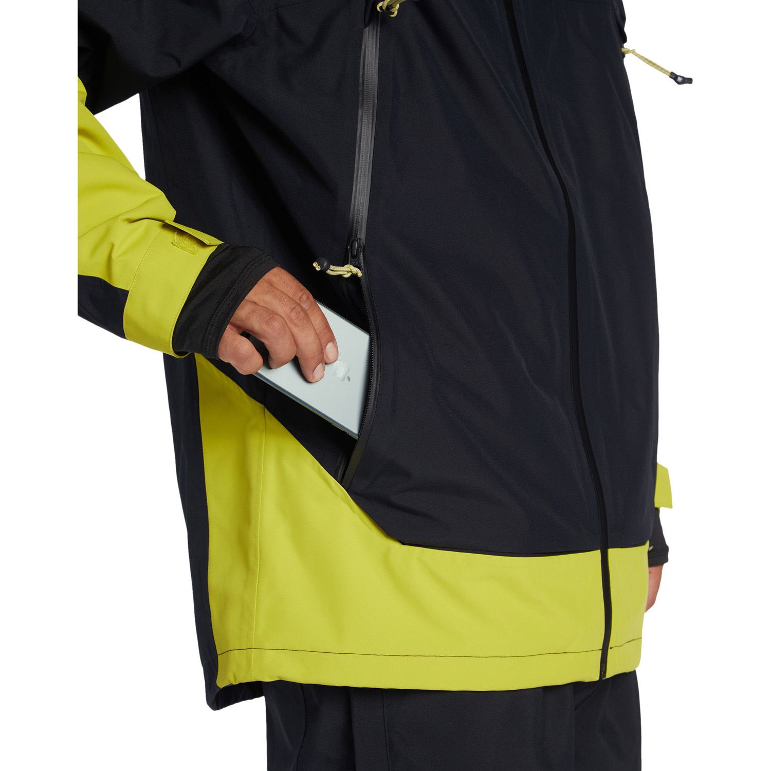 - GORE-TEX: Gore-Tex is a high-performance fabric technology that is commonly used in snow jackets and other outdoor gear. It is a waterproof and breathable fabric that is designed to provide protection from the elements while still allowing moisture vapor to escape from inside the jacket. The Gore-Tex membrane is made up of microscopic pores that are much smaller than water droplets, but larger than water vapor molecules. This means that water is not able to penetrate the membrane from the outside, but sweat and other moisture vapor can escape from the inside of the jacket, keeping the wearer dry and comfortable. Gore-Tex is designed to be lightweight and packable, making it a popular choice for backcountry skiers and snowboarders. In addition to its waterproof and breathable properties, Gore-Tex is also windproof, which helps to provide extra protection from the elements.