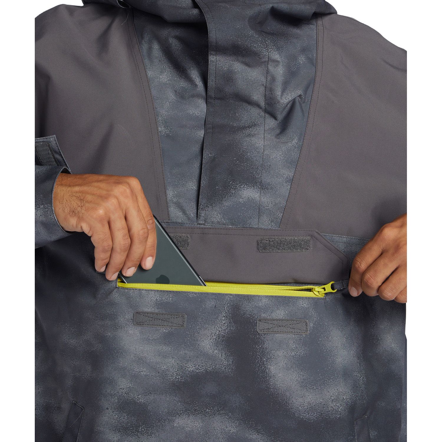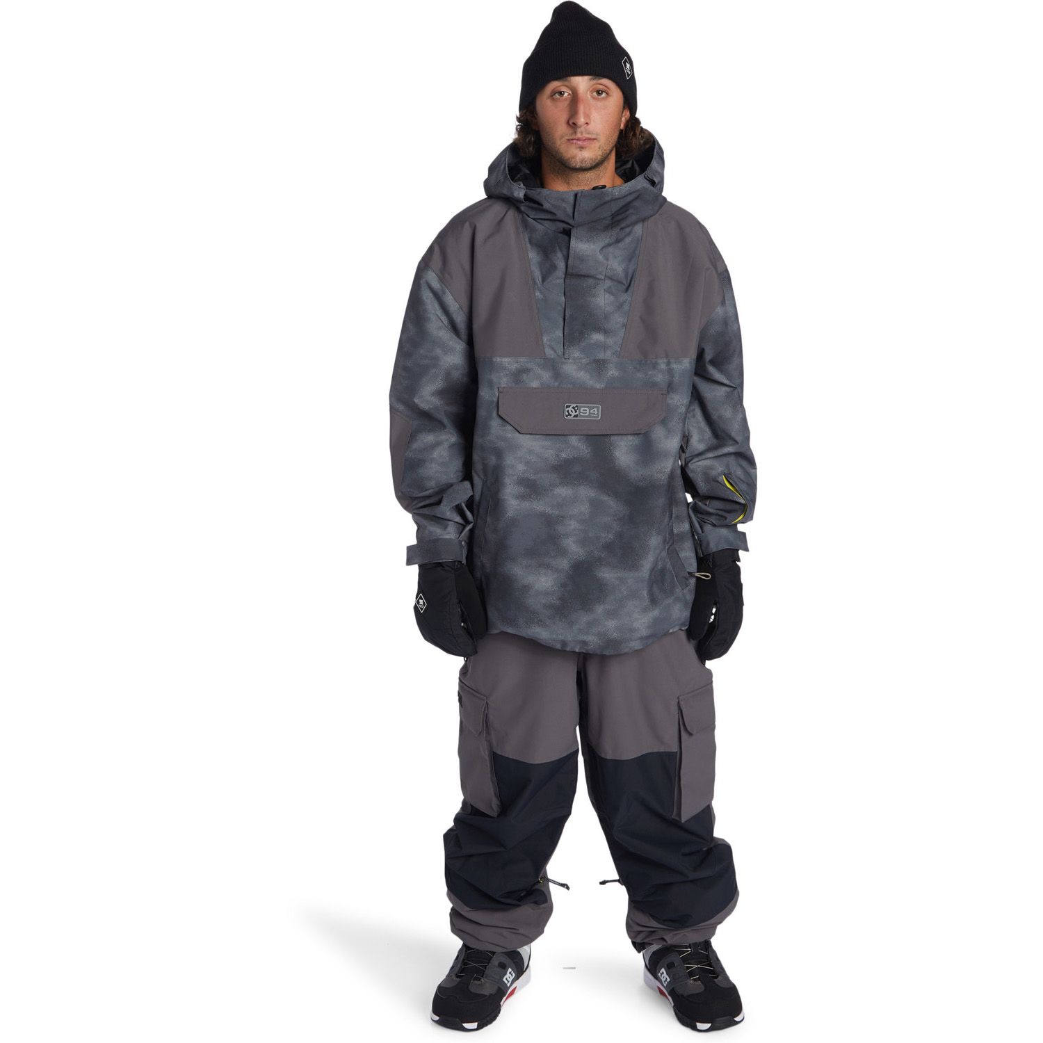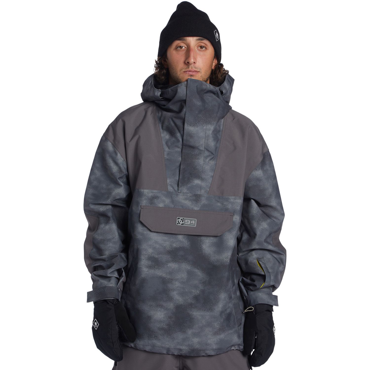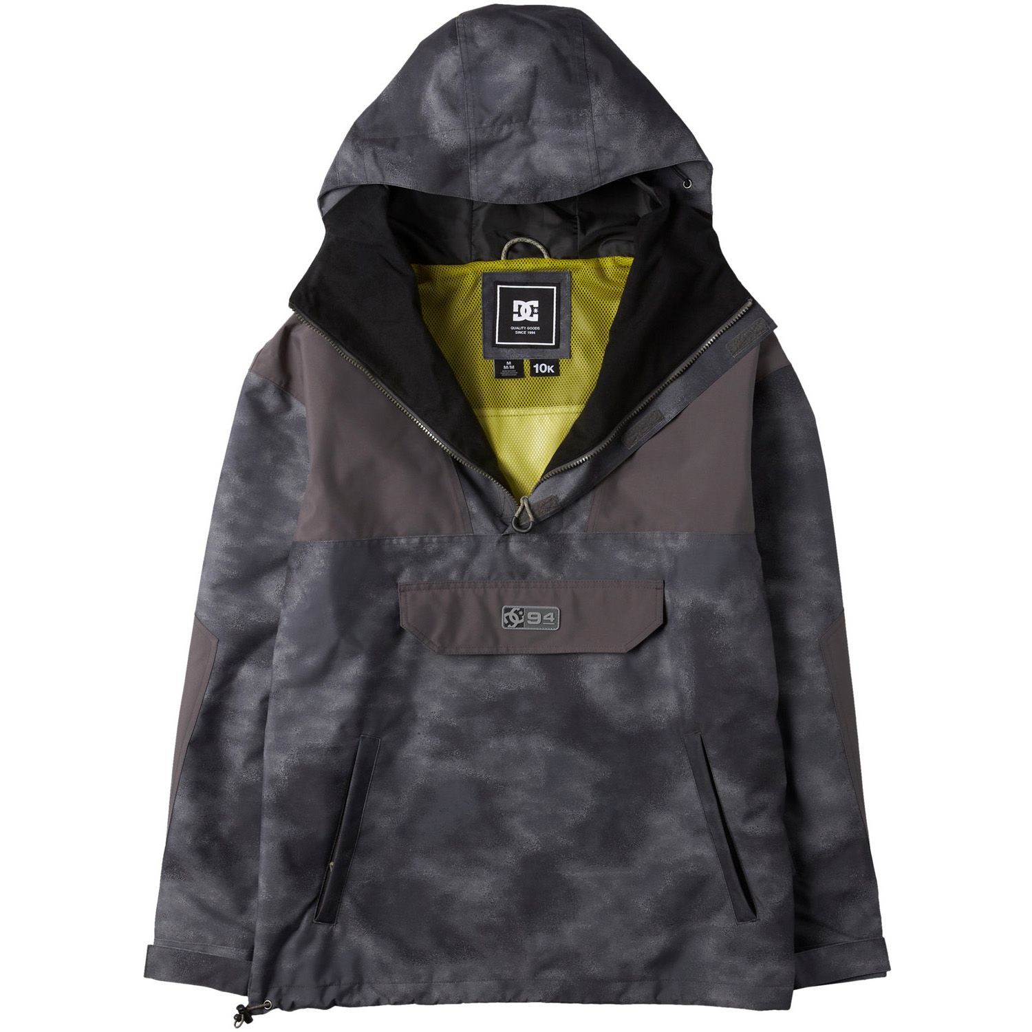 The DC-43 Anorak Snowboard Jacket combines street-style aesthetics with functional mountain performance. Featuring vibrant color blocking and bold prints, this jacket is crafted with 10K Weather Defense waterproofing to protect against the elements. It includes purpose-built pockets for convenience and is designed to keep you comfortable on the slopes.