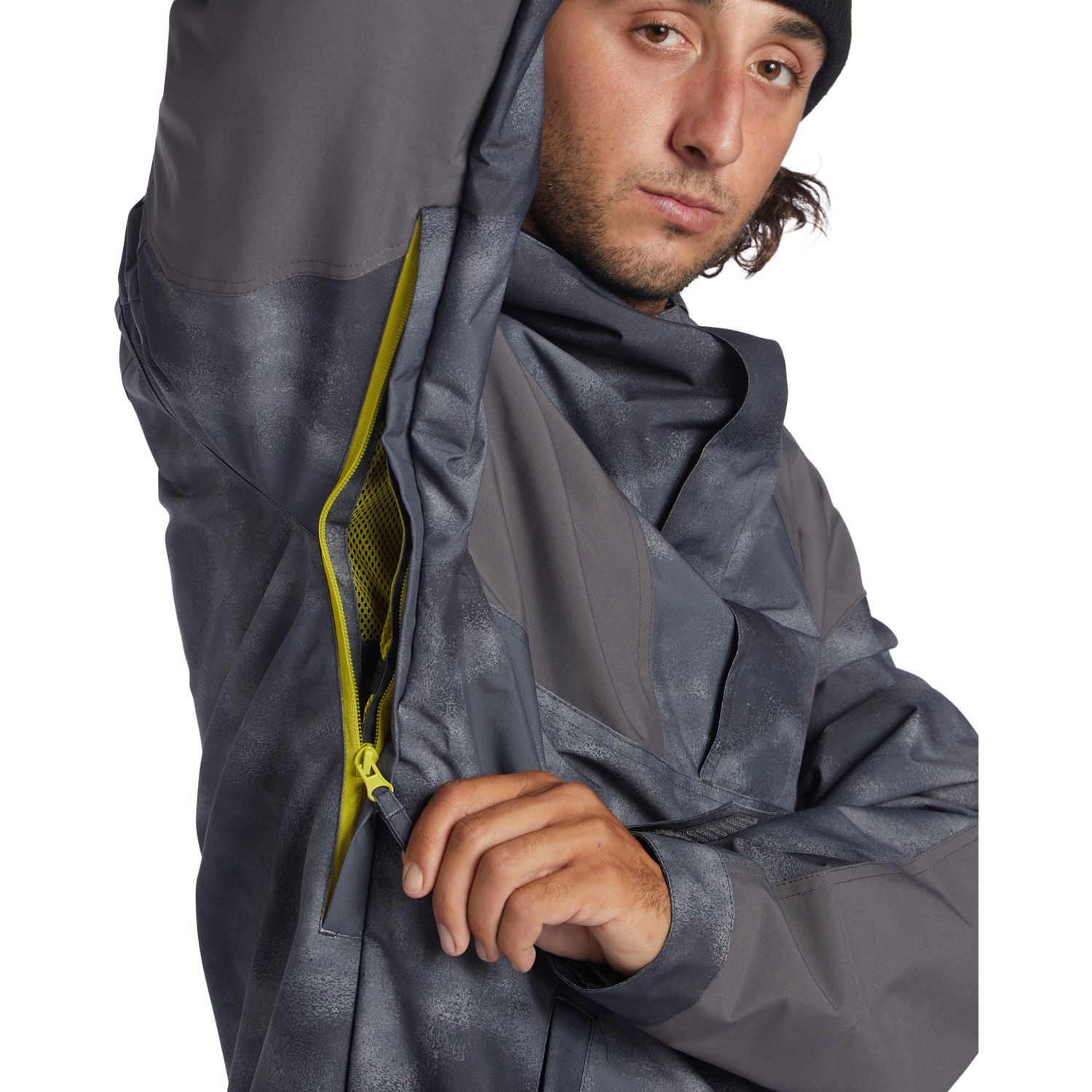 - GORE-TEX: Gore-Tex is a high-performance fabric technology that is commonly used in snow jackets and other outdoor gear. It is a waterproof and breathable fabric that is designed to provide protection from the elements while still allowing moisture vapor to escape from inside the jacket. The Gore-Tex membrane is made up of microscopic pores that are much smaller than water droplets, but larger than water vapor molecules. This means that water is not able to penetrate the membrane from the outside, but sweat and other moisture vapor can escape from the inside of the jacket, keeping the wearer dry and comfortable. Gore-Tex is designed to be lightweight and packable, making it a popular choice for backcountry skiers and snowboarders. In addition to its waterproof and breathable properties, Gore-Tex is also windproof, which helps to provide extra protection from the elements.
