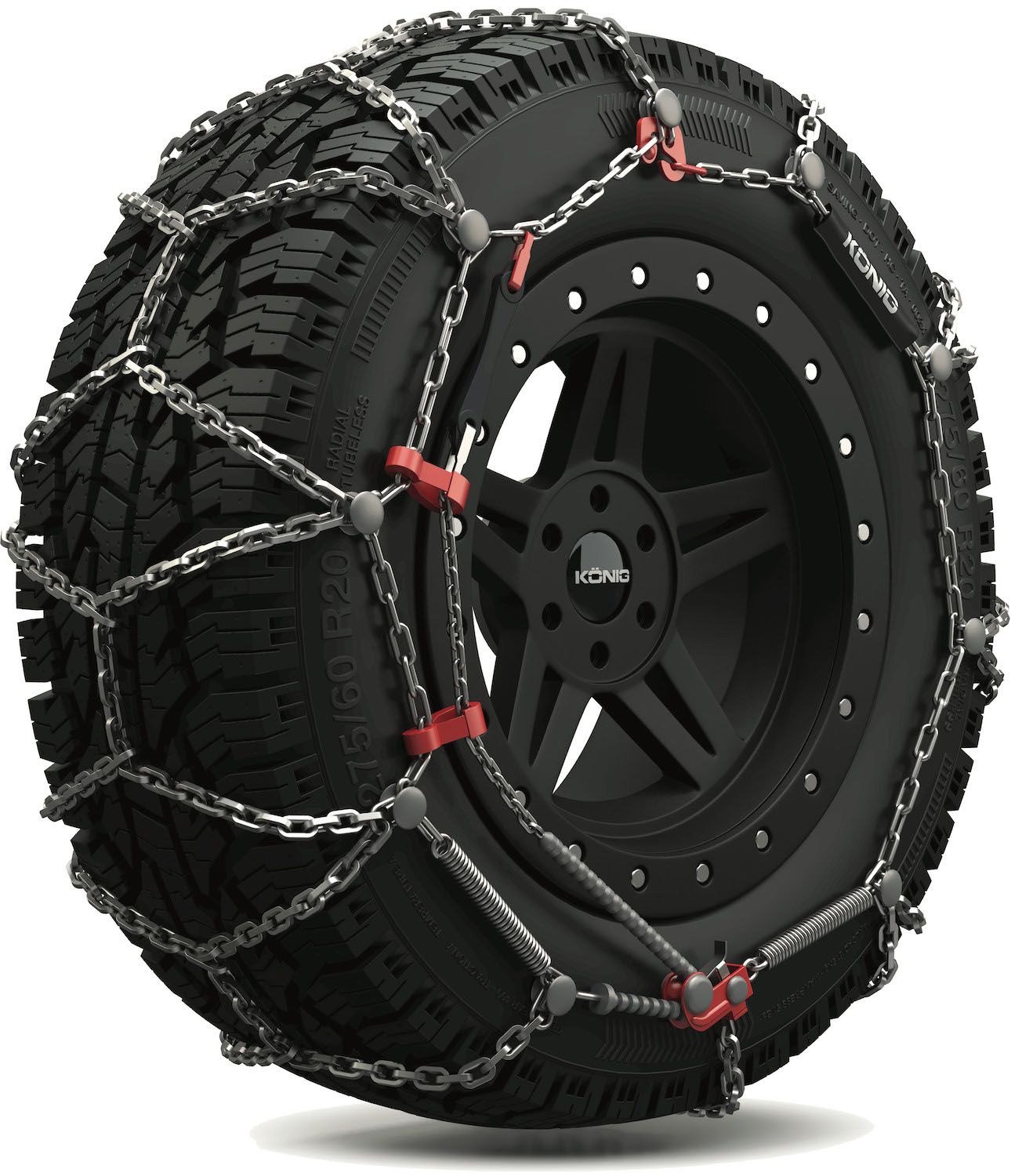 Konig XD-16 Pro is the dedicated chains for SUVs and Pickups equipped with oversizes tyres. König XD-16 Pro features a ground-up fitting system: thanks to the flexible cable sliding on the ground behind the wheel, all the chain parts get connected without moving the vehicle.