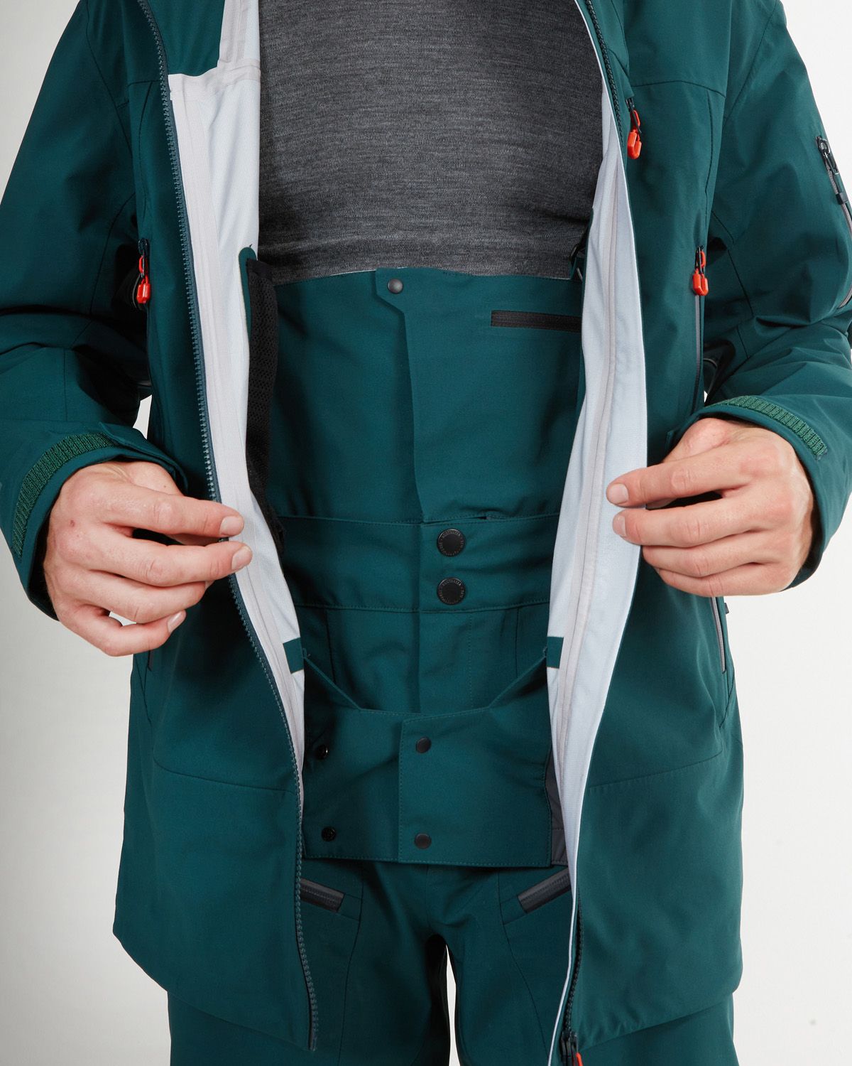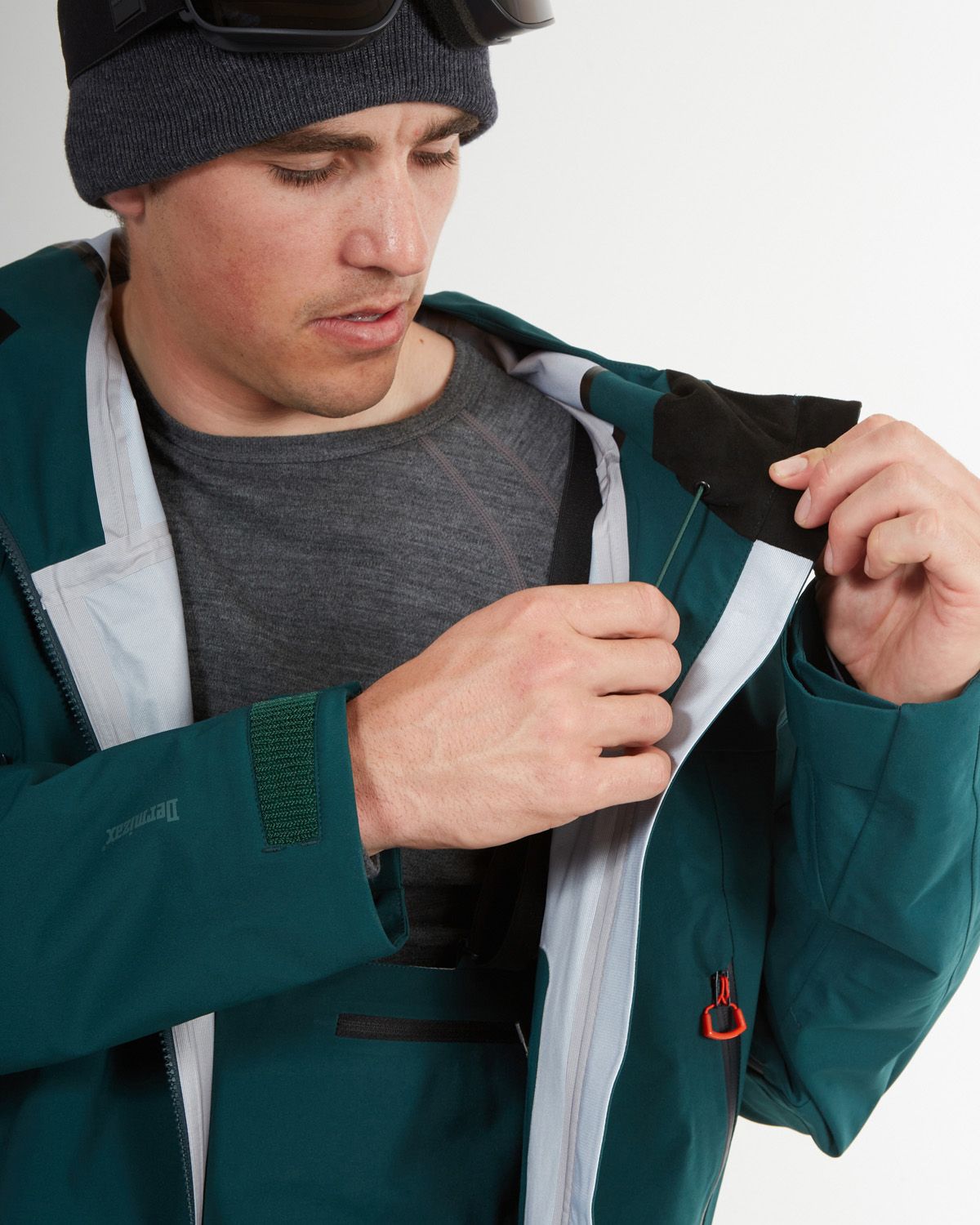 - GORE-TEX: Gore-Tex is a high-performance fabric technology that is commonly used in snow jackets and other outdoor gear. It is a waterproof and breathable fabric that is designed to provide protection from the elements while still allowing moisture vapor to escape from inside the jacket. The Gore-Tex membrane is made up of microscopic pores that are much smaller than water droplets, but larger than water vapor molecules. This means that water is not able to penetrate the membrane from the outside, but sweat and other moisture vapor can escape from the inside of the jacket, keeping the wearer dry and comfortable. Gore-Tex is designed to be lightweight and packable, making it a popular choice for backcountry skiers and snowboarders. In addition to its waterproof and breathable properties, Gore-Tex is also windproof, which helps to provide extra protection from the elements.