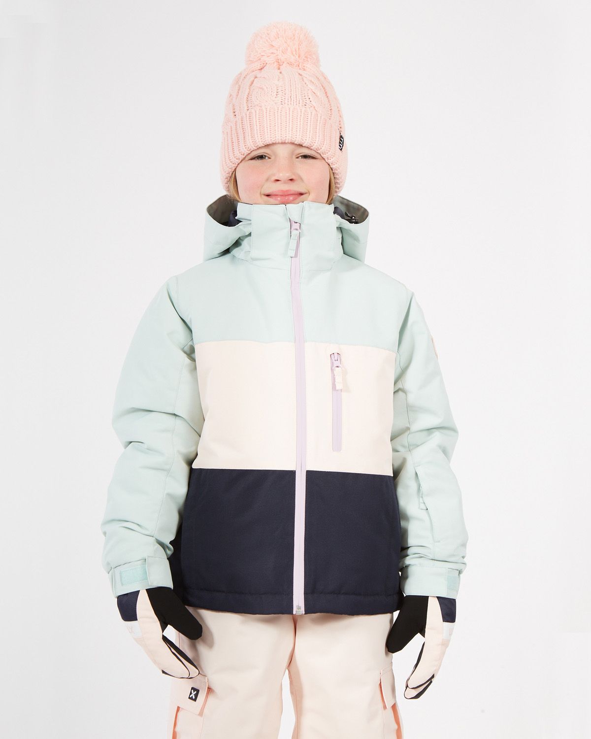 The Snowcone Kids Snow Jacket is designed to keep your child warm and protected during winter adventures. This jacket is available in various colors, including Ski Nostalgia, Kalamata, Flowerfields, and Cool Mint.