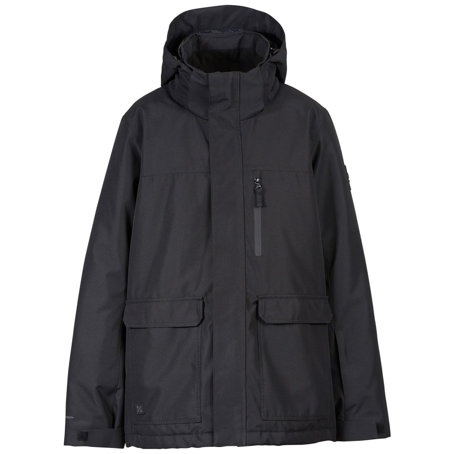- WATERPROOFING: Refers to the ability of the jacket to prevent water from penetrating through the fabric and getting to your skin or base layers. Snow jackets are typically made of materials and textiles that have been engineered to be highly resistant to water. The waterproofing ability of a snow jacket is typically measured in millimetres and is referred to as the "waterproof rating." This rating tells you how much water pressure the fabric can withstand before it starts to leak. For example, a jacket with a 10,000mm waterproof rating means it can withstand 10,000mm of water pressure before it starts to leak. A 10,000mm rating is a suitable standard for snow jackets, while a jacket with a rating of 20,000mm or 30,000mm is extremely waterproof. A jacket with a high waterproof rating will help to keep you dry and comfortable while you are skiing or snowboarding. In addition to the waterproof rating, snow jackets may also have additional waterproofing features like taped seams, waterproof zippers, and water-resistant coatings such as DWR that help to enhance the jacket's ability to repel water.
