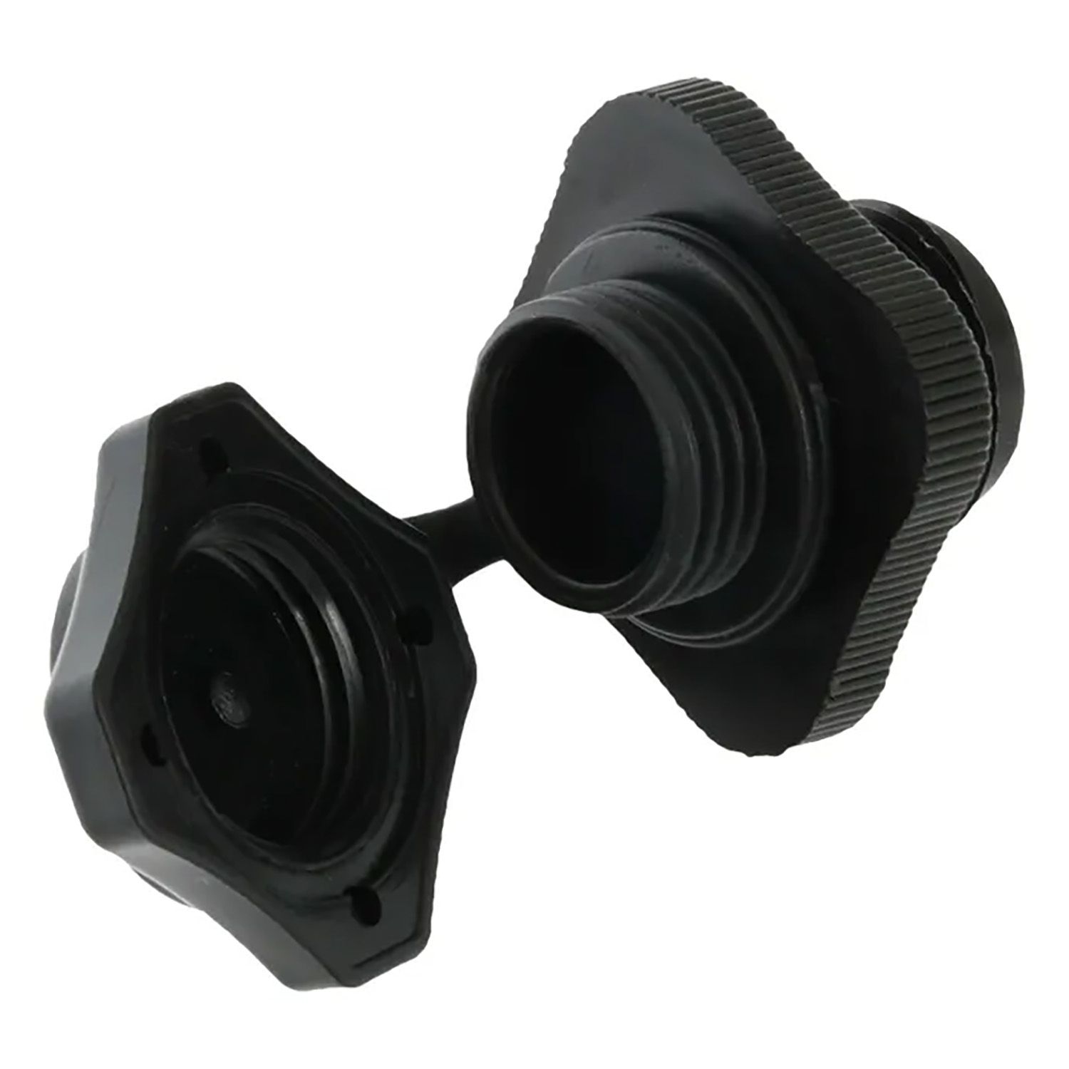The Boston Valve is a screw-on, two-way valve. The bottom portion is screwed into the towable, while the top is screwed open for inflation and then tightened after inflation. Air is easily released by unscrewing the base connector. It's important not to miss a thread when screwing in the Boston Valve as it may cause the tube to slowly leak air. Boston Valves can be replaced easily.