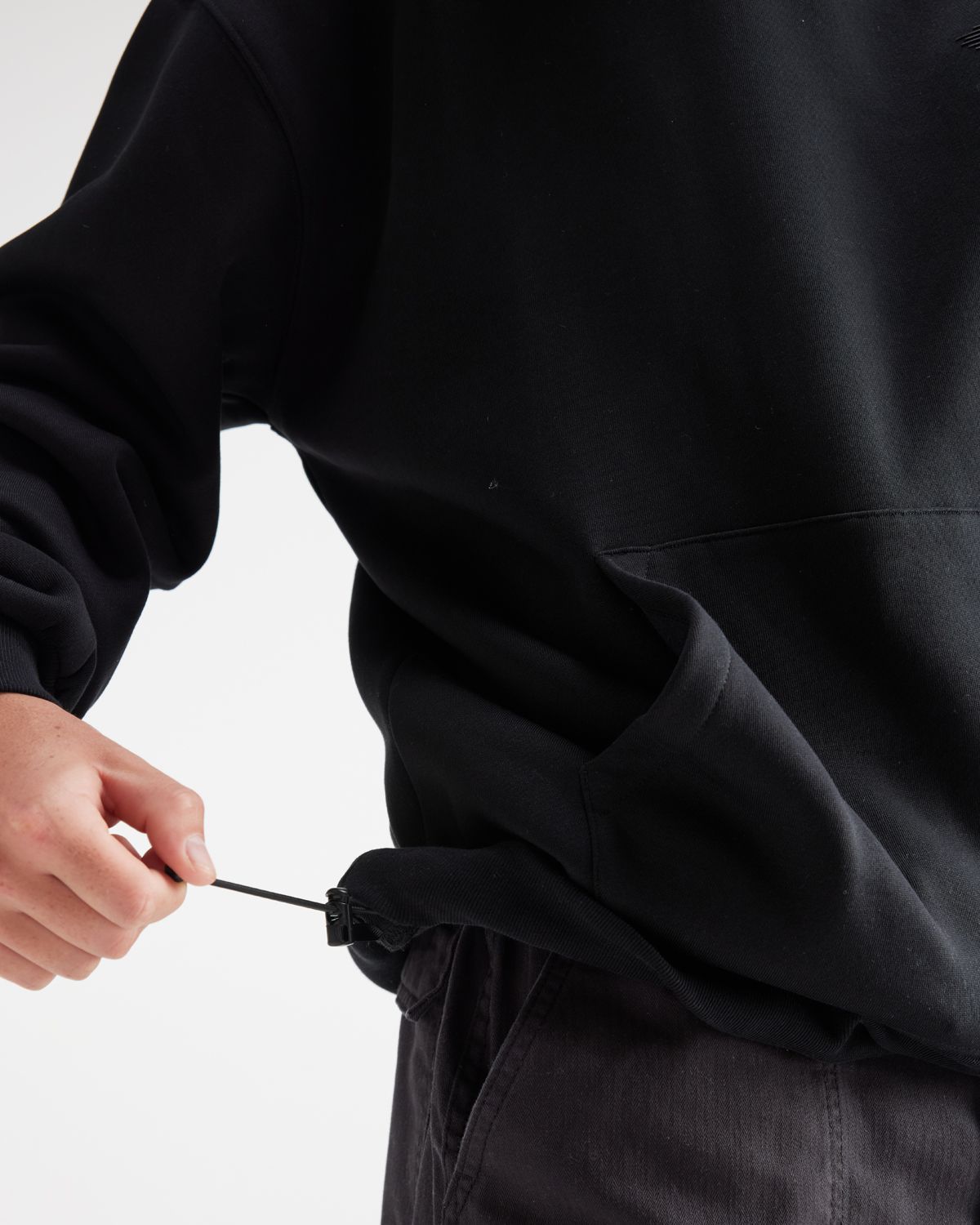 • Hidden elastic bottom hem adjuster