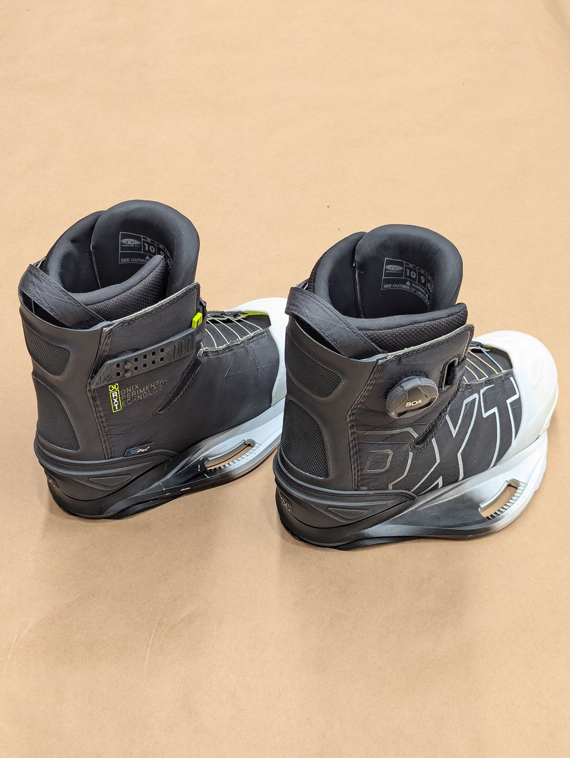 2024 Ronix RXT BOA Size 10 (Ex-Demo). Good condition, both Boas work fine. Some minor scuffs, but otherwise these are good looking boots.