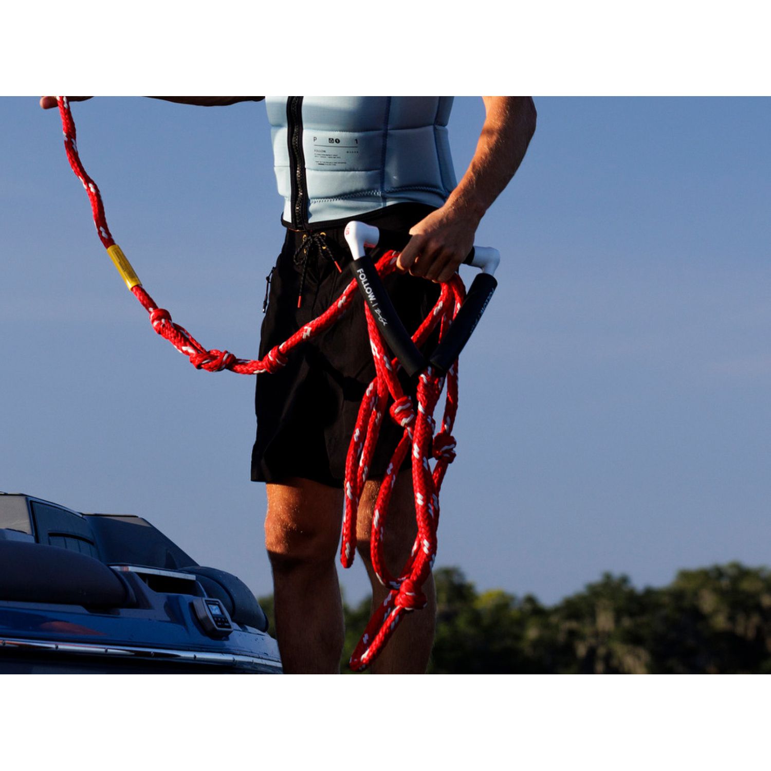 Rope designed for Towing with your jet ski, 33ft total length with a 8ft section of heavy duty PVC coating to reduce the chance of you sucking it up the intake, 13 inch handle to reduce the risk of your arm falling in. Something Follow have been wanting for a while. Full Foam internal like our surf rope to ensure it floats. The best tow rope Follow has used.
