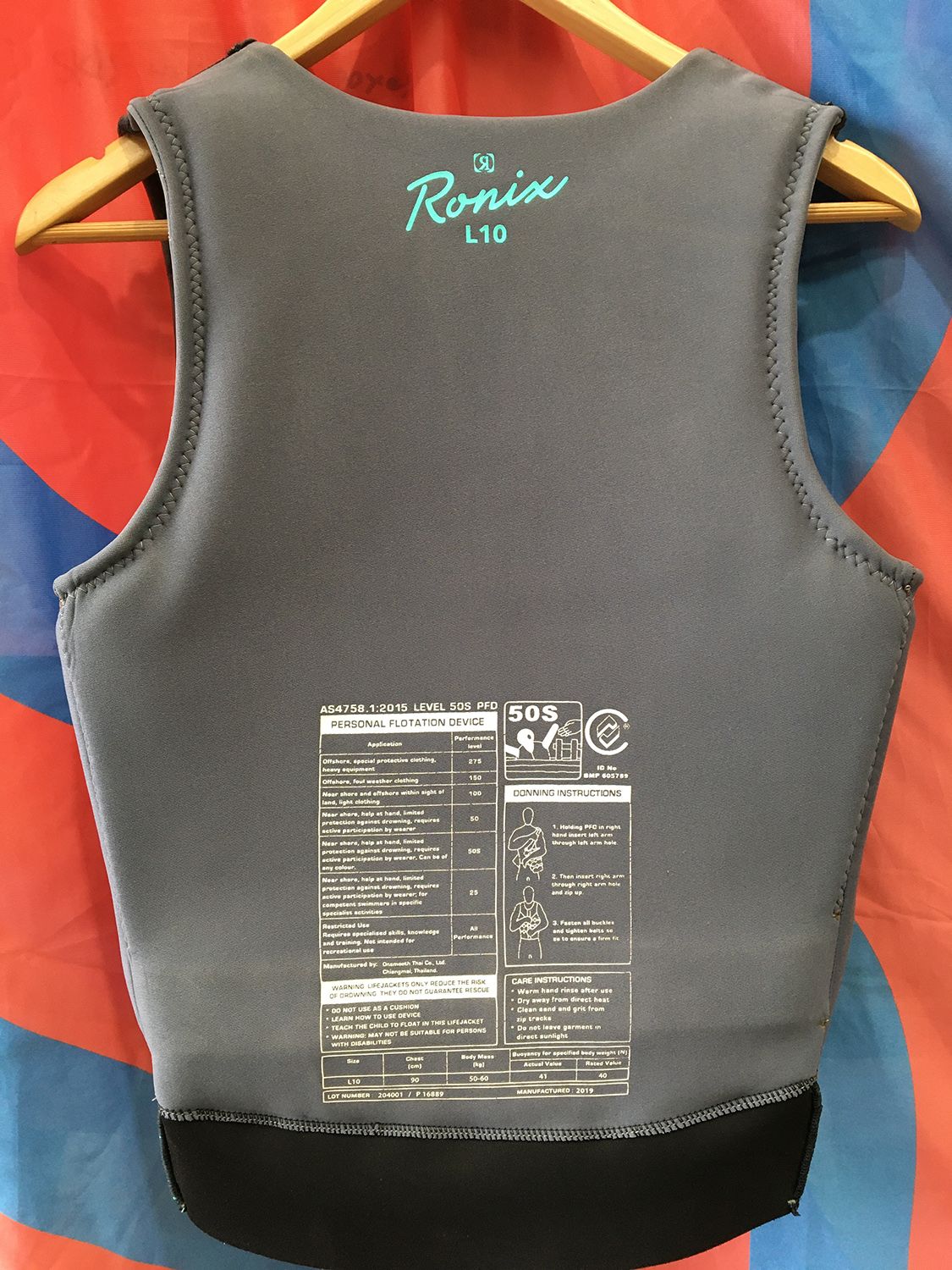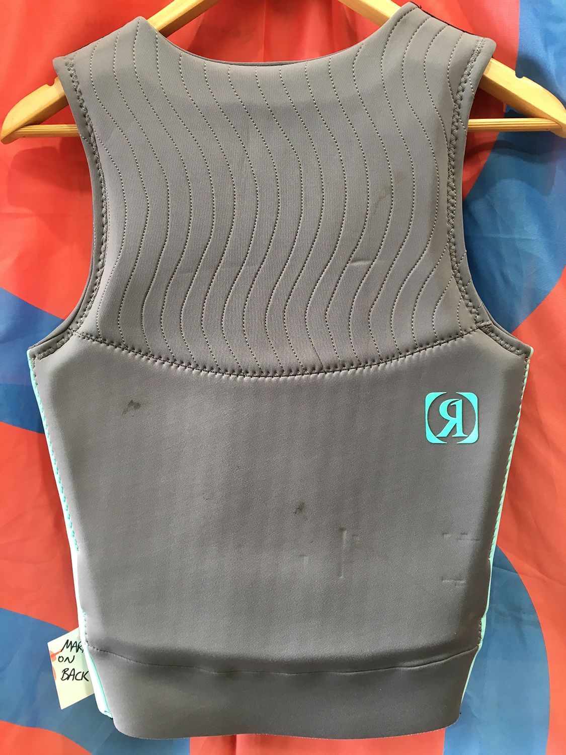 2020 Ronix Supernova Vest Ladies size 10 (Used). This vest is used so it's certainly a little bit dirty with some marks on the back and a tiny bit faded. It's not as clean as a new vest but other than that it's in good condition.