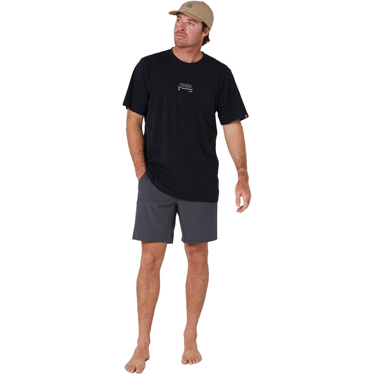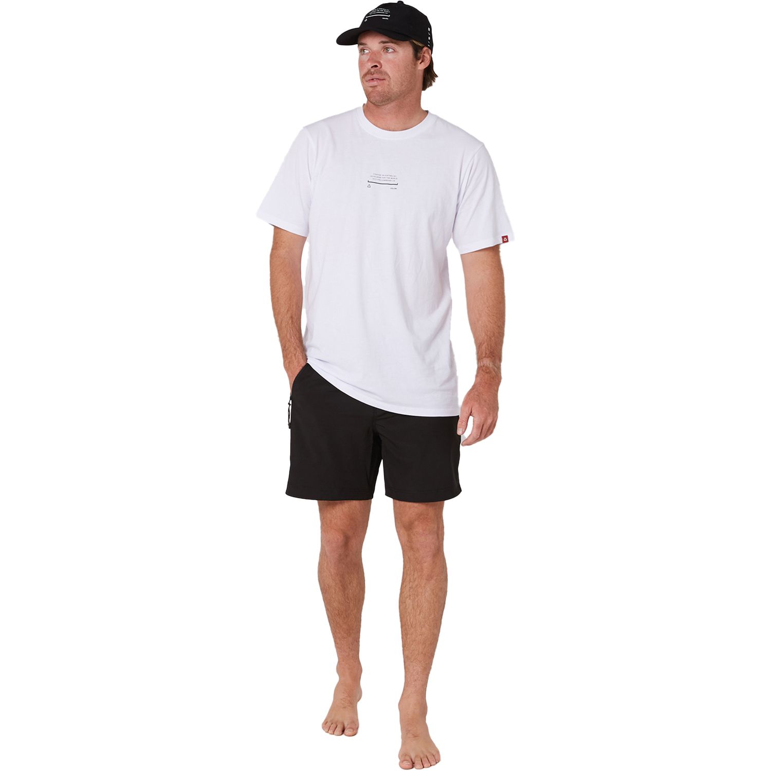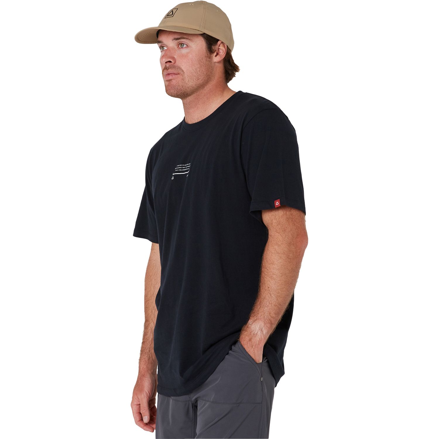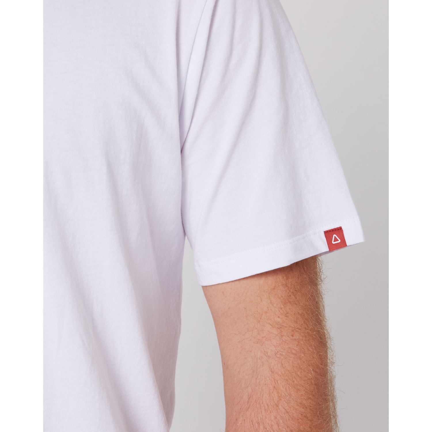 100% organic cotton, 160GSM material. Breathable for traveling and hot weather so there’s no static build up. Better on-skin feel and not clingy so you’re not pulling them down all day. Just the perfect all-rounder. Good quality tees are underrated.