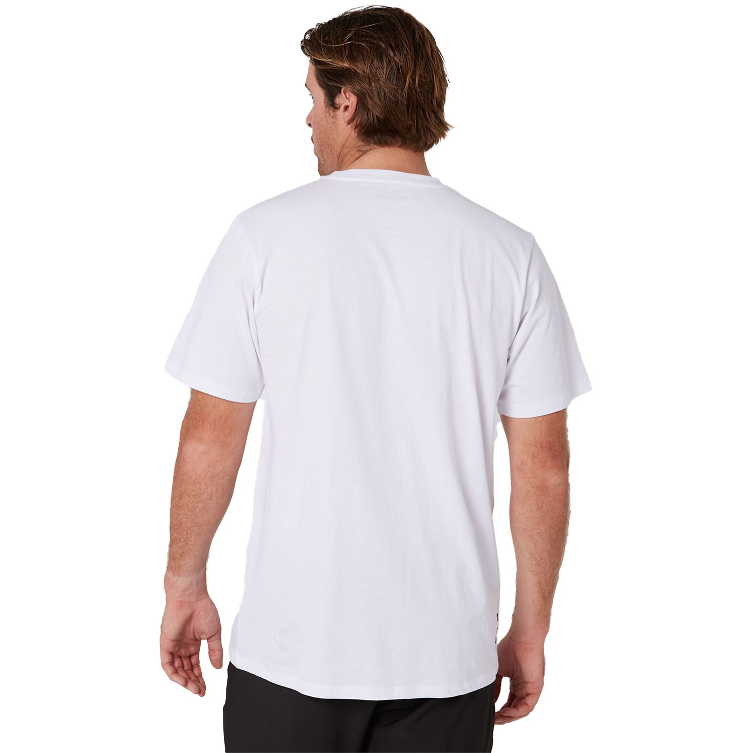 100% organic cotton, 160GSM material. Breathable for traveling and hot weather so there’s no static build up. Better on-skin feel and not clingy so you’re not pulling them down all day. Just the perfect all-rounder. Good quality tees are underrated.
