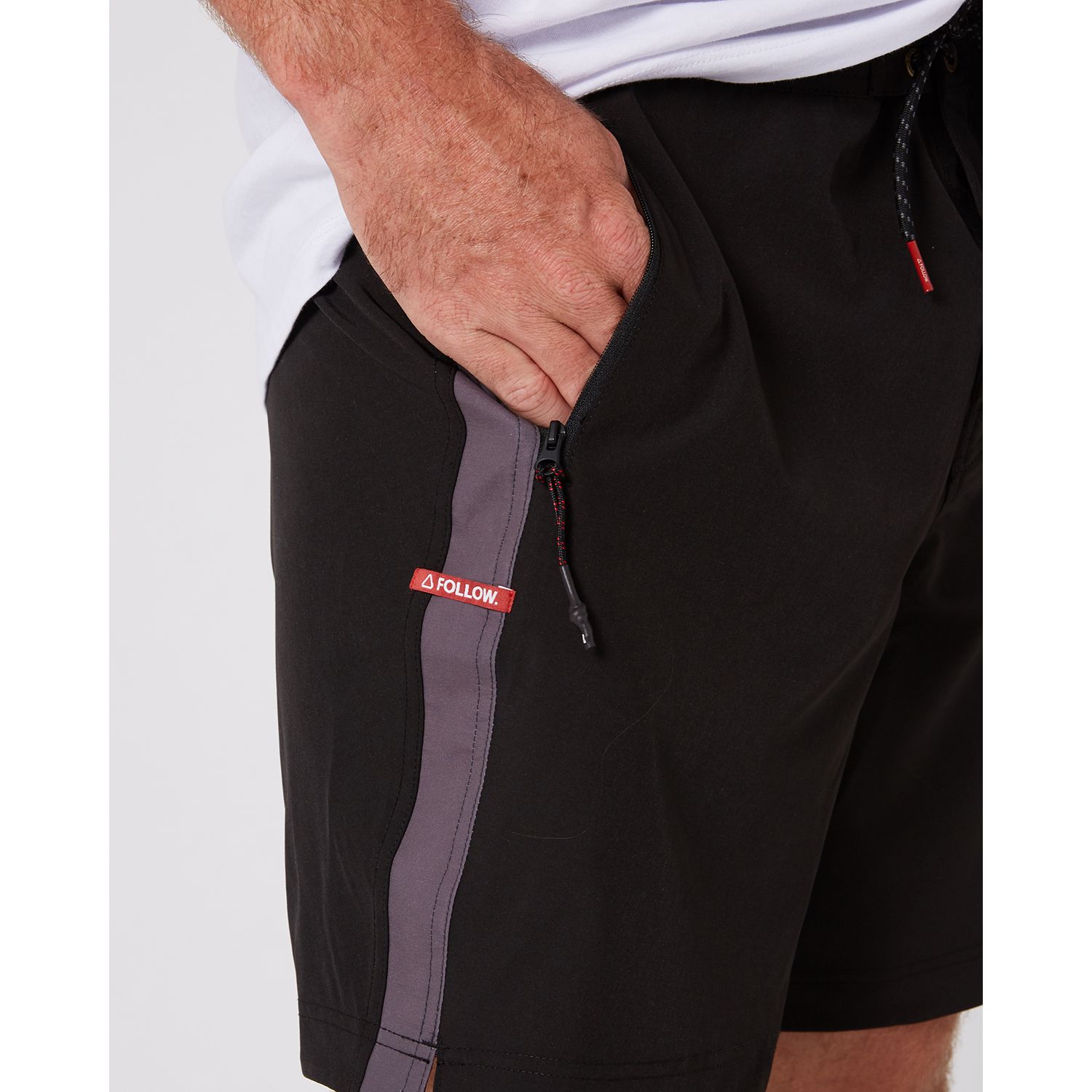 A little bit of everything Follow love spliced into one product. Seamless inside legs so it doesn’t rub on your board. Same material both soft and light as the all-day shorts, with great stretch, that won’t blow out when wet. A fixed waist band for a consistent fit so you don’t lose your shorts in the waves. Add a single sided splash colour panel to make it unique with a single zipper pocket that can fit your phone and wallet while you’re off the water.