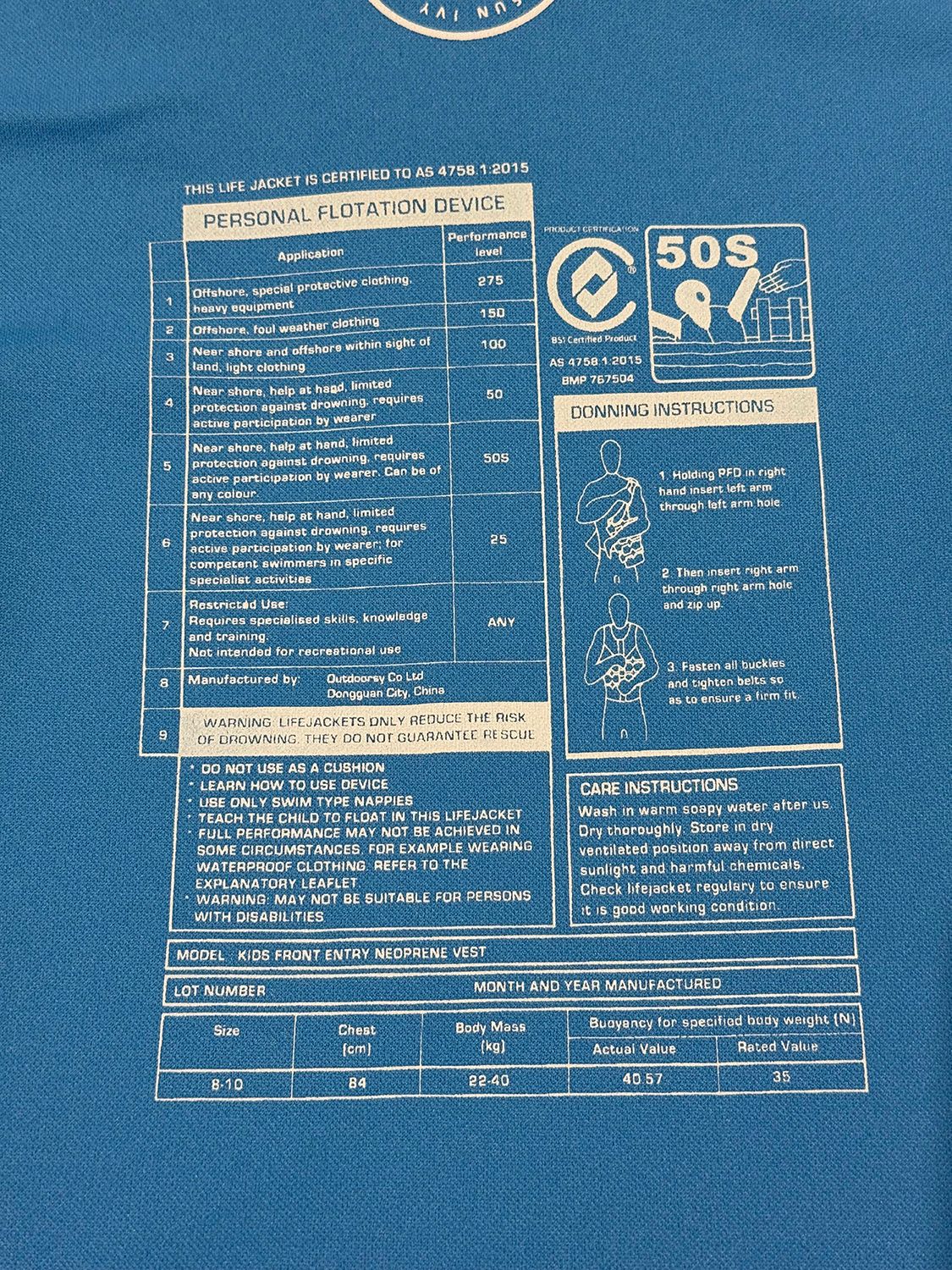 Attention. This vest has the approval stamp but NO lot number. That means the vest is NOT an Approved floatation device.