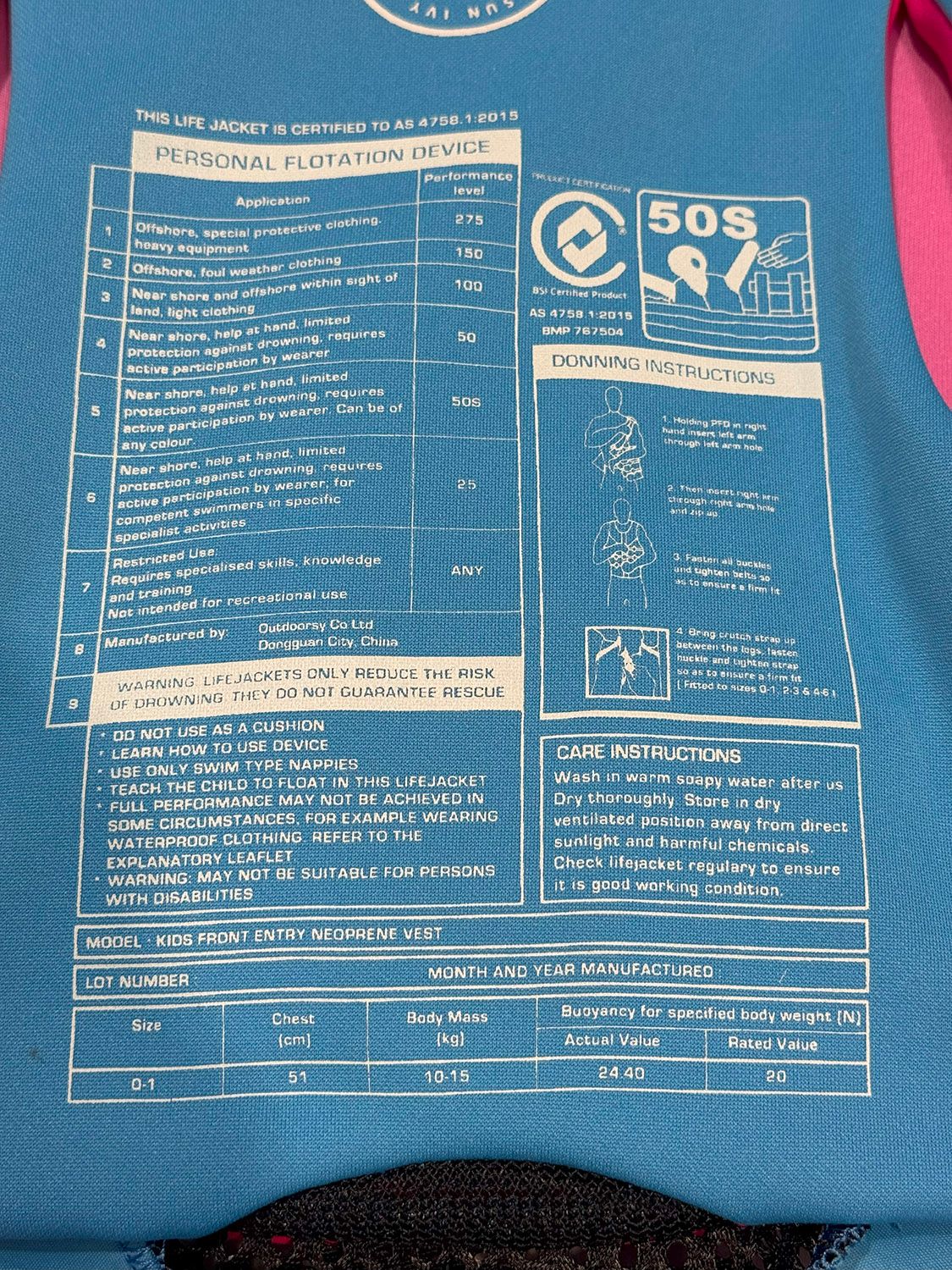 Attention. This vest has the approval stamp but NO lot number. That means the vest is NOT an Approved floatation device.