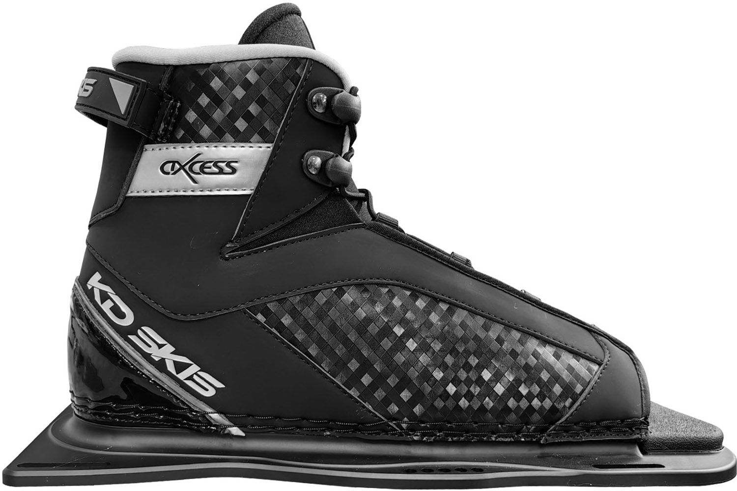 - REAR TOE PLATES: Rear toe plates are available in adjustable or fixed styles. Adjustable RTP’s are one-size-fits-all and feature a lace or BOA system to cater for all foot sizes up to US 14. Fixed RTP’s are made of rubber and are available in specific US shoe sizes with aluminium plates. Hybrid rear toe plates (HRT’s) combine the ankle support of a full boot with the flexibility of a RTP. HRTs are best for skiers who deep water starts with two feet in and are looking to bridge the gap between a full boot and traditional RTP.