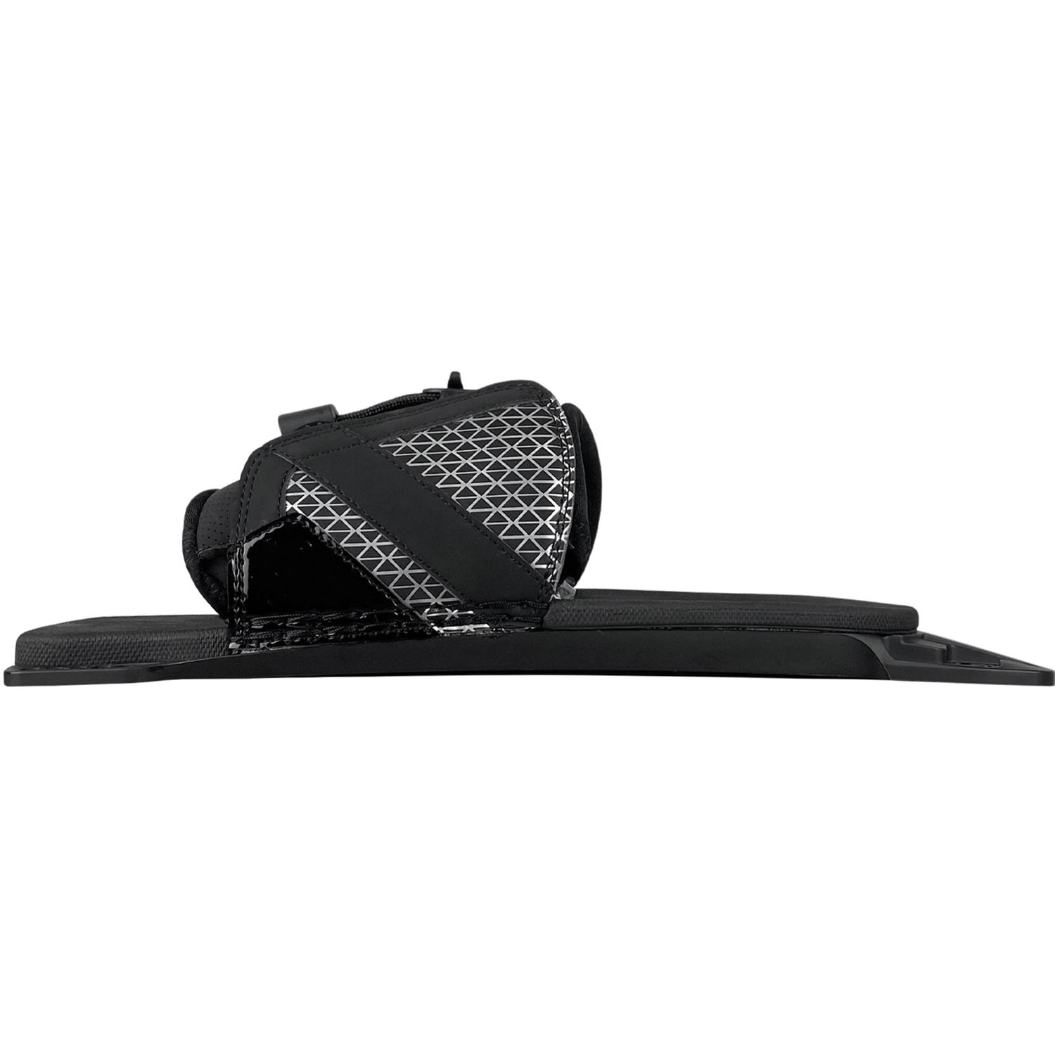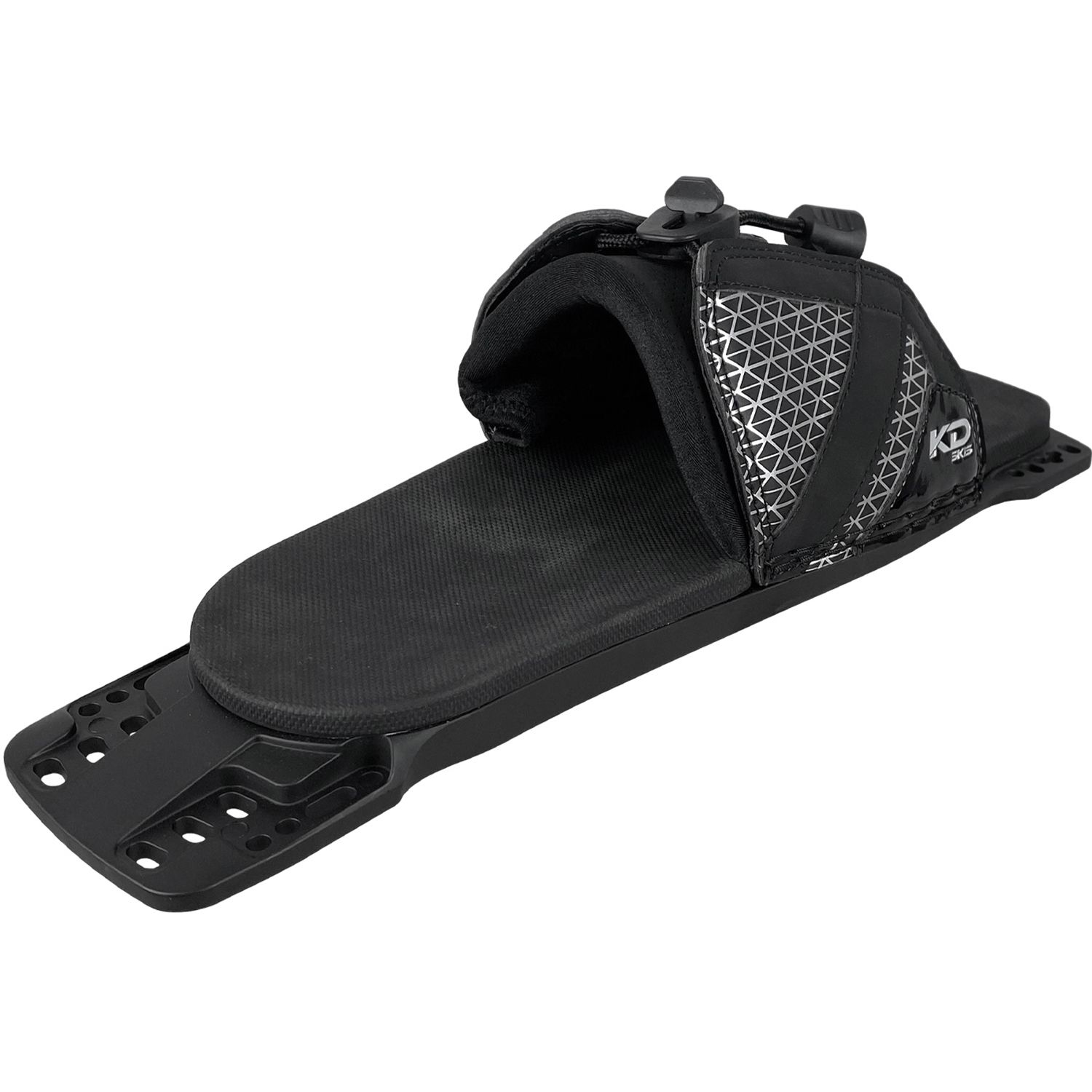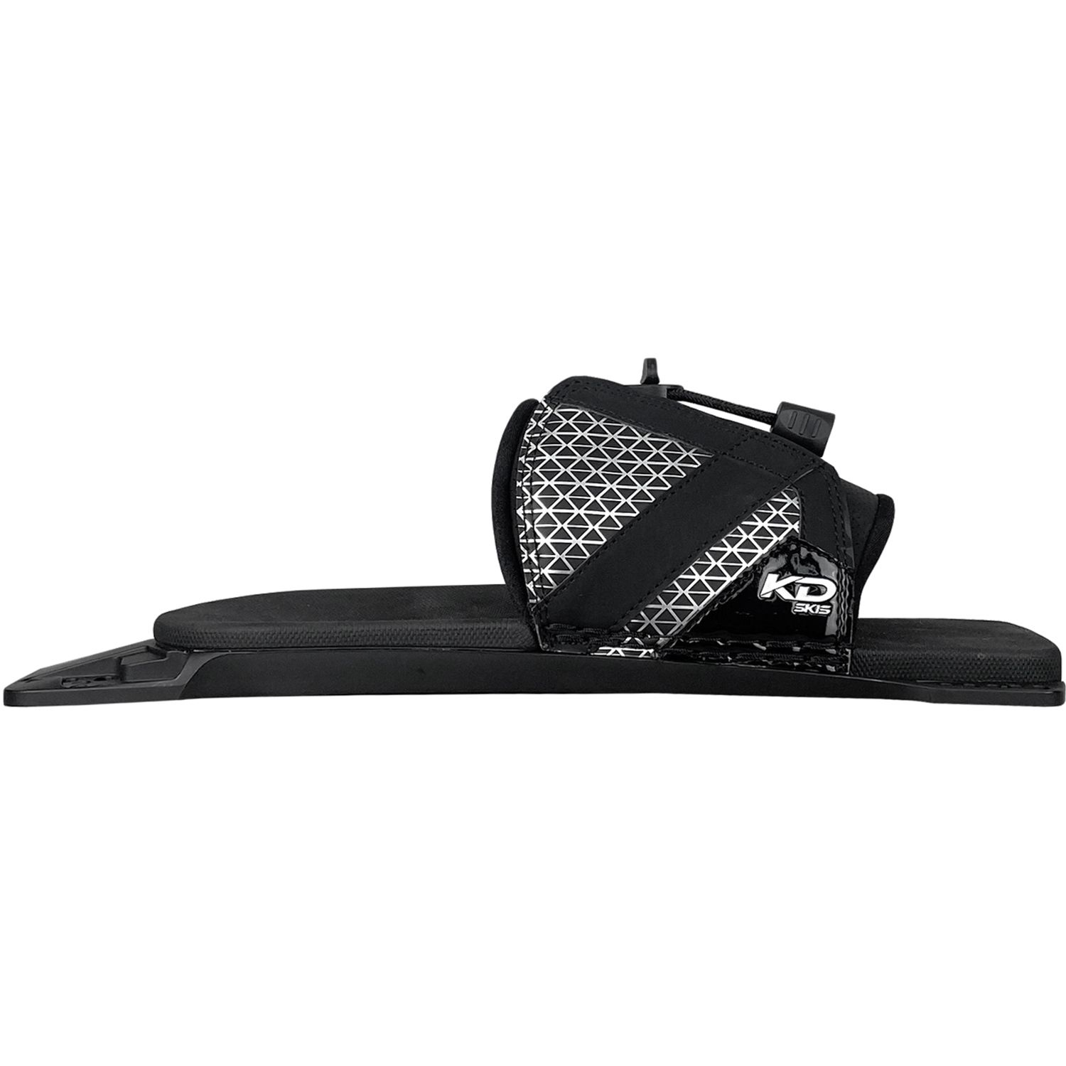 - REAR TOE PLATES: Rear toe plates are available in adjustable or fixed styles. Adjustable RTP’s are one-size-fits-all and feature a lace or BOA system to cater for all foot sizes up to US 14. Fixed RTP’s are made of rubber and are available in specific US shoe sizes with aluminium plates. Hybrid rear toe plates (HRT’s) combine the ankle support of a full boot with the flexibility of a RTP. HRTs are best for skiers who deep water starts with two feet in and are looking to bridge the gap between a full boot and traditional RTP.