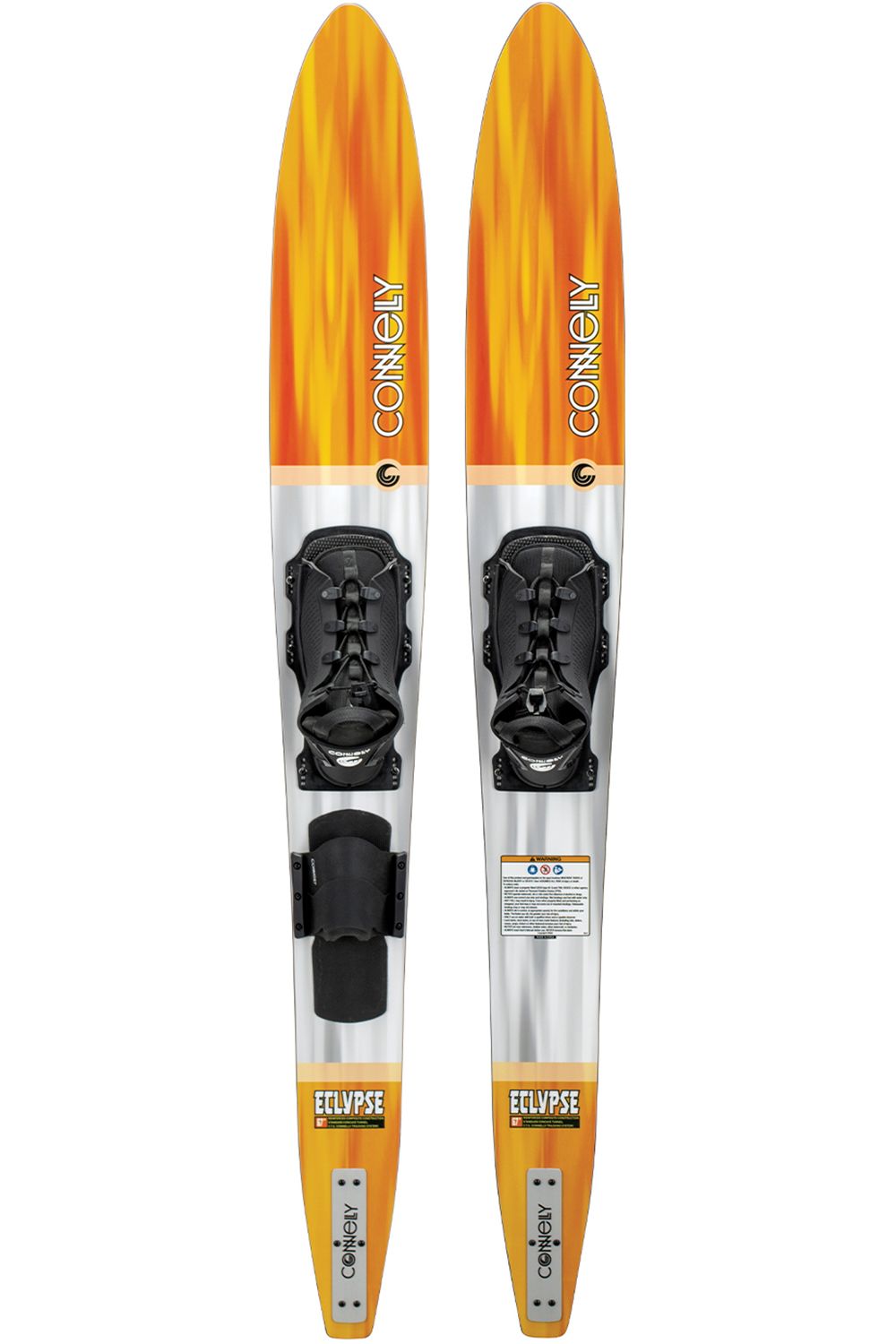 The Eclypse is Connelly's premier combo set designed to make skiing easier and more fun for all ages and skill levels. The wide nose and tail make deep water starts easier and the narrow waist keeps the ski lively out on the water. Fitted with Connelly's easy-to- use Swerve binding, with a contour conforming elastomer outer wrap, this combo pair will keep the whole family smiling.