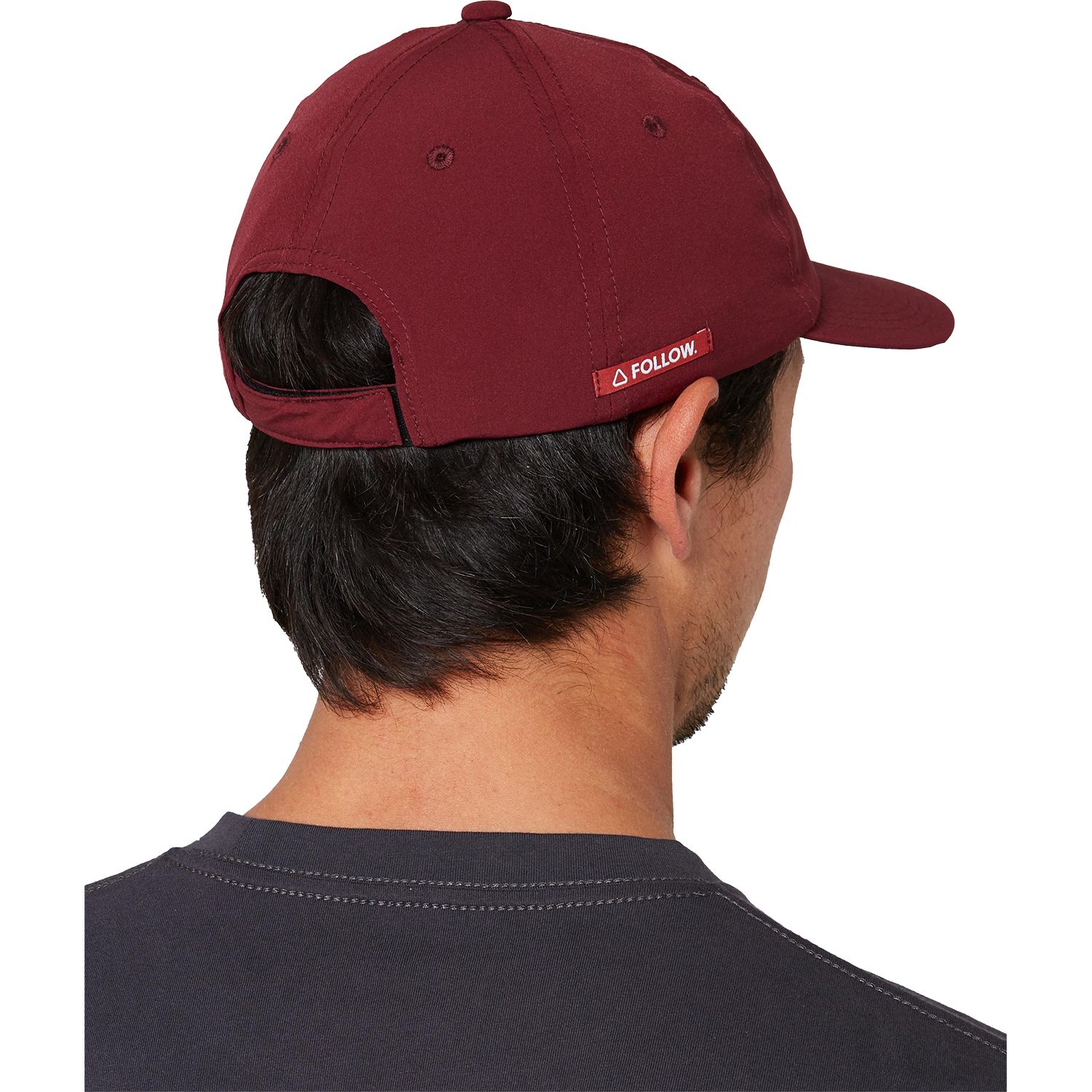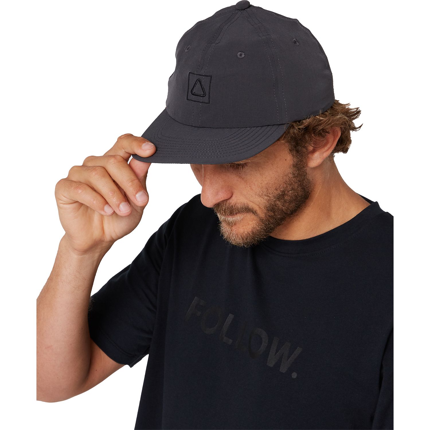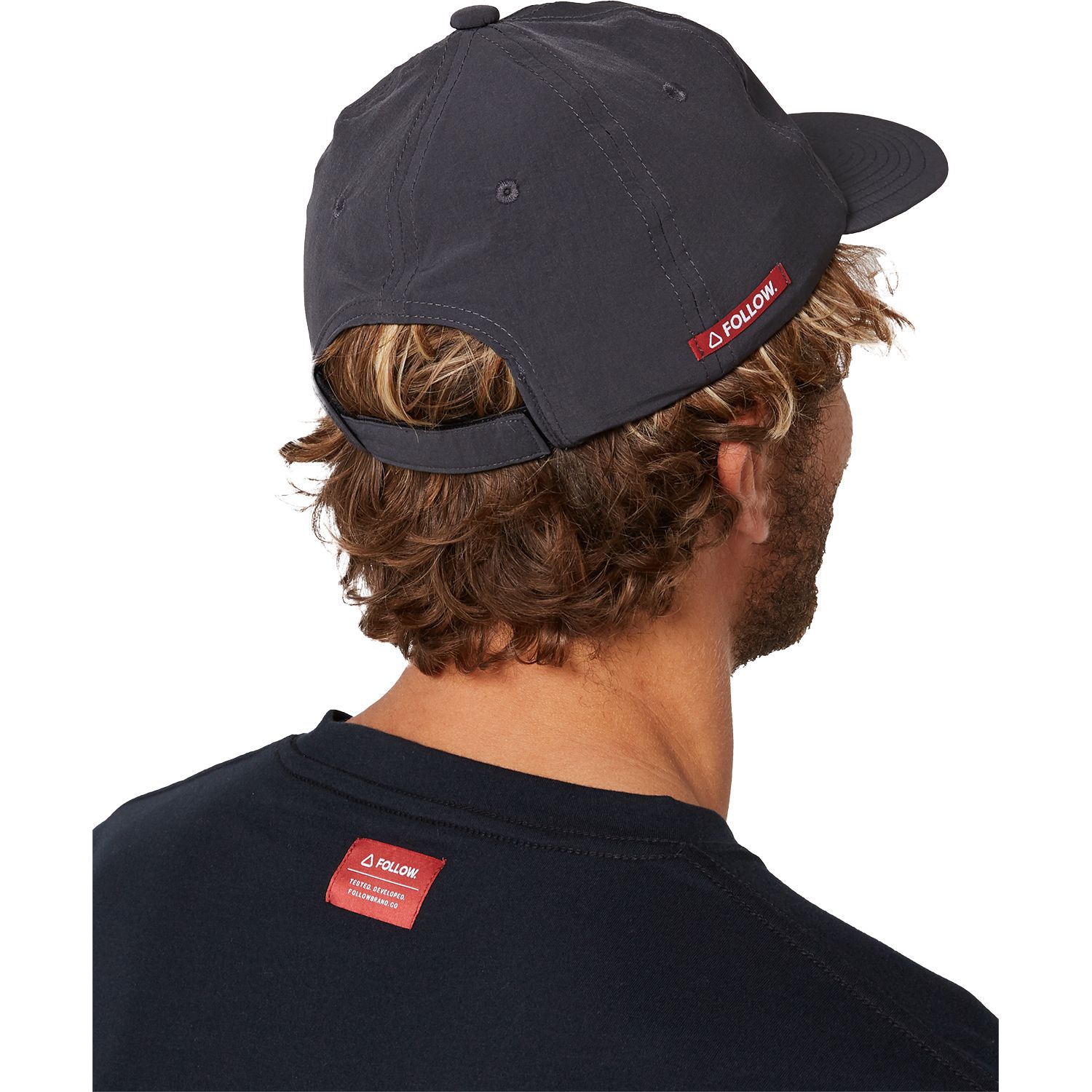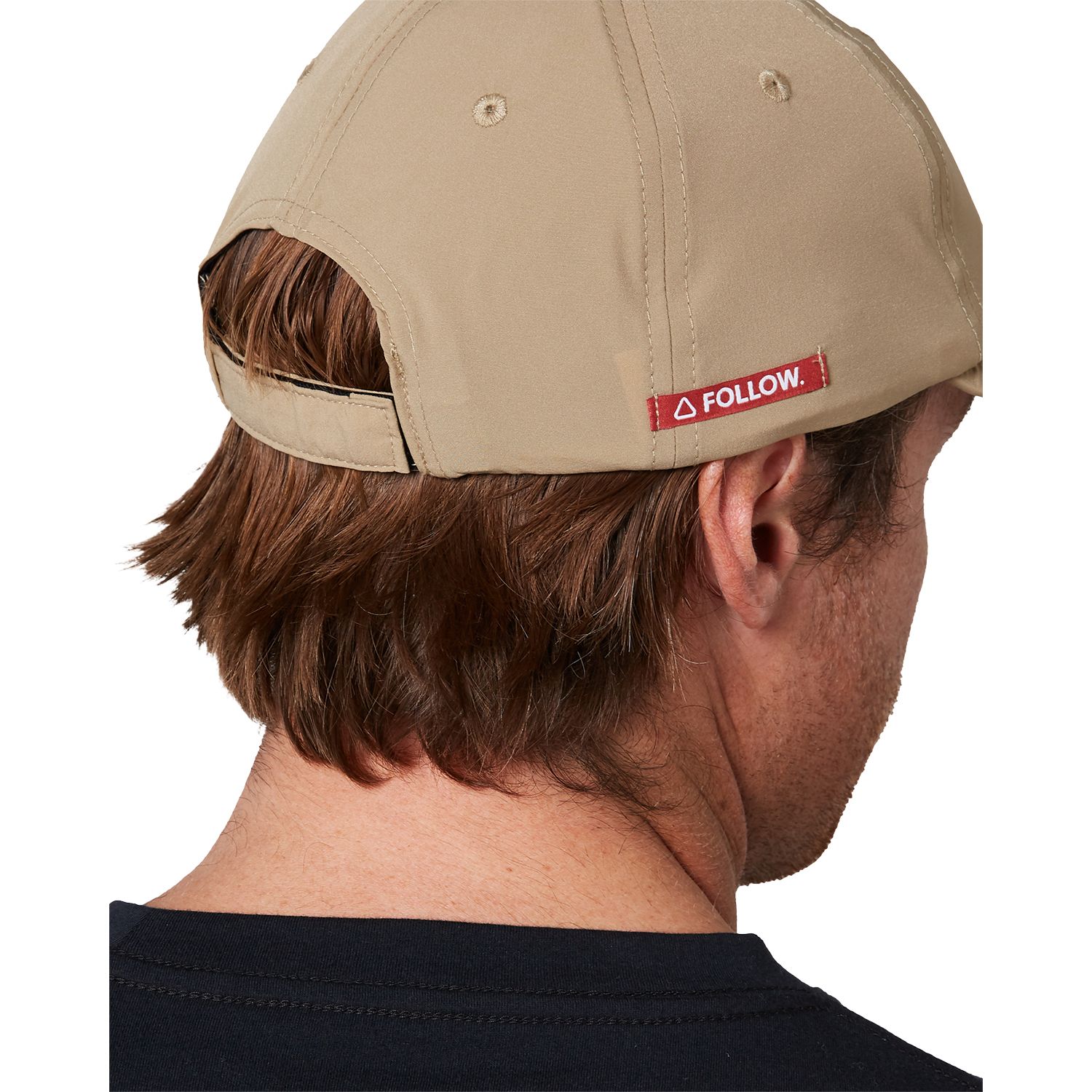 A semi-curve brim, regular fit 6 panel hat with a rear Velcro Closure. Plastic fittings so no rust if used in the salt water. Follow's unique mid flex soft brim to stuff it in the backpack