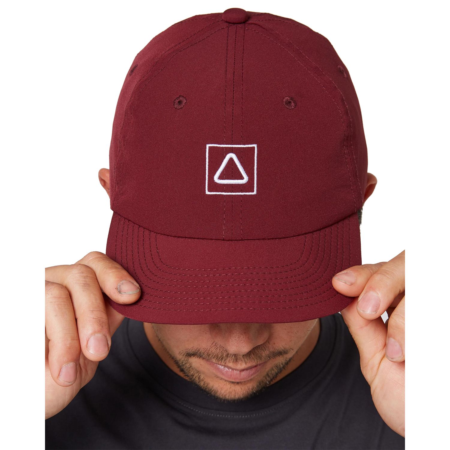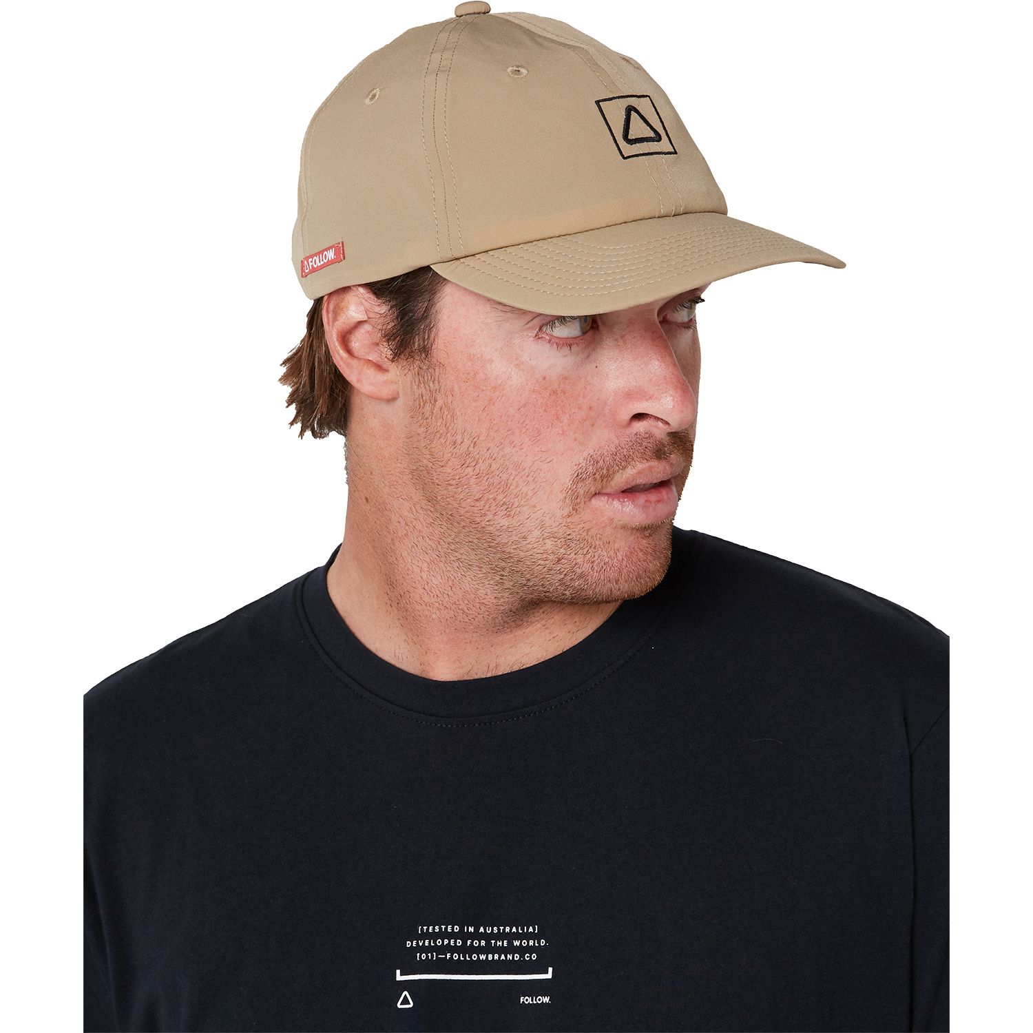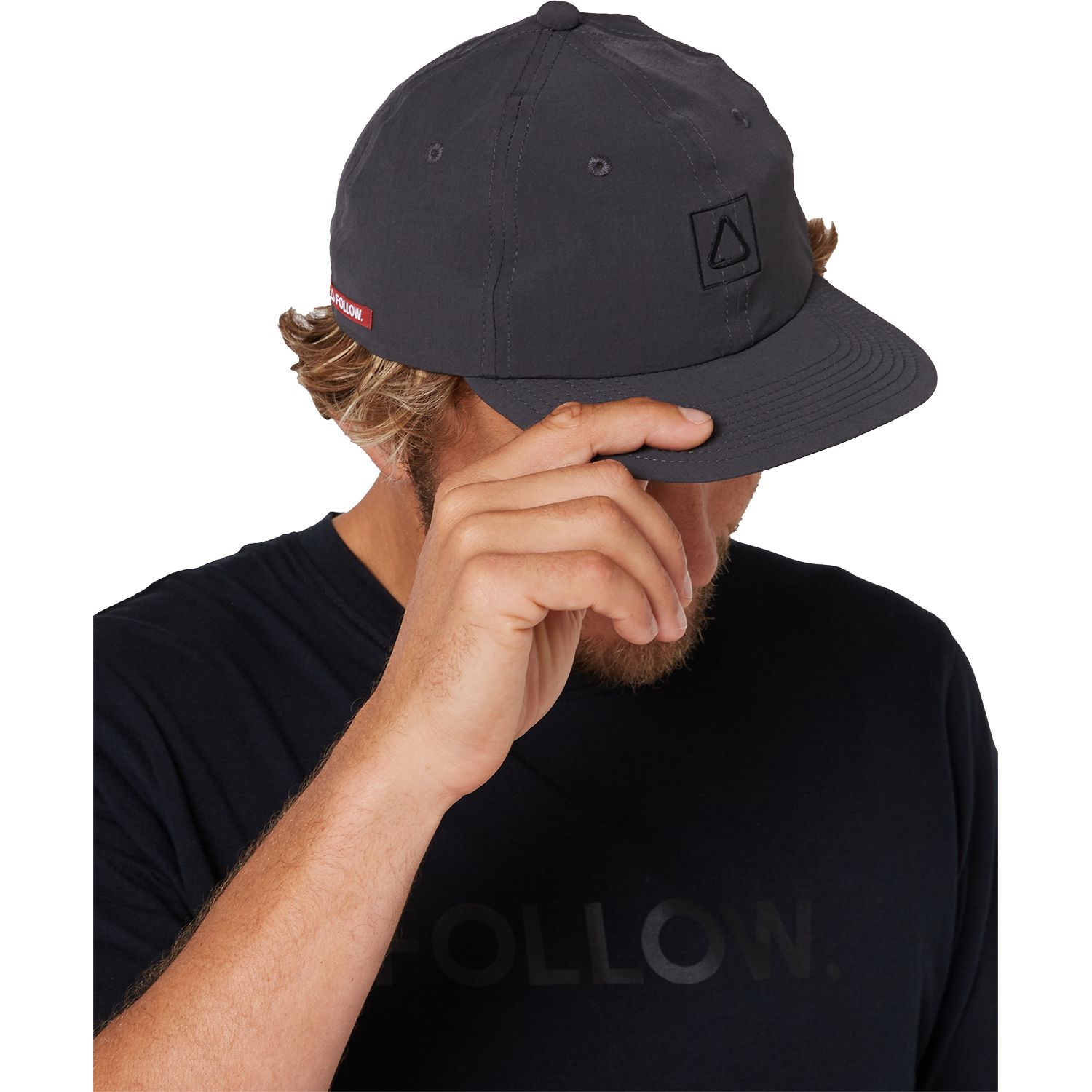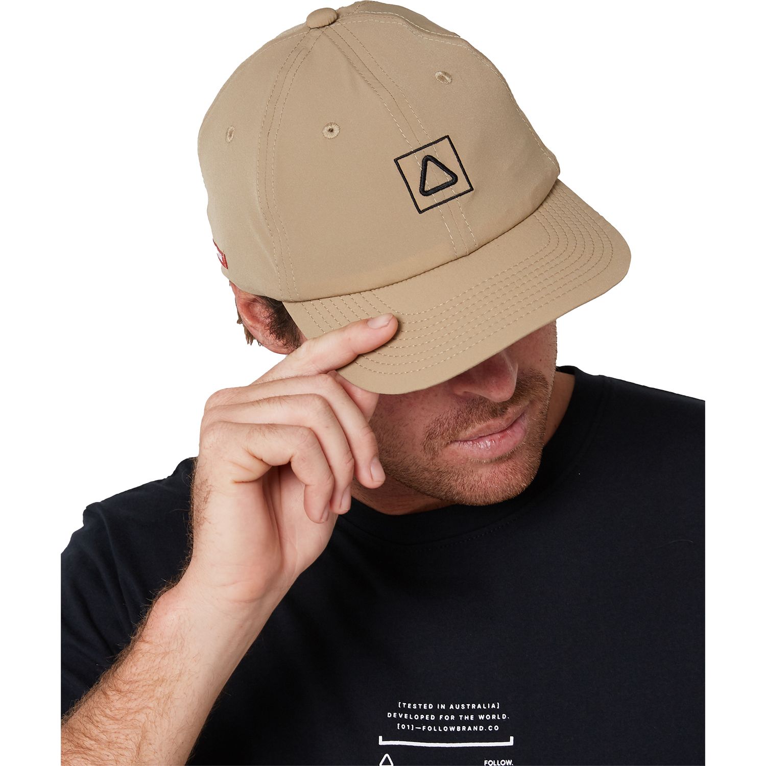 A semi-curve brim, regular fit 6 panel hat with a rear Velcro Closure. Plastic fittings so no rust if used in the salt water. Follow's unique mid flex soft brim to stuff it in the backpack