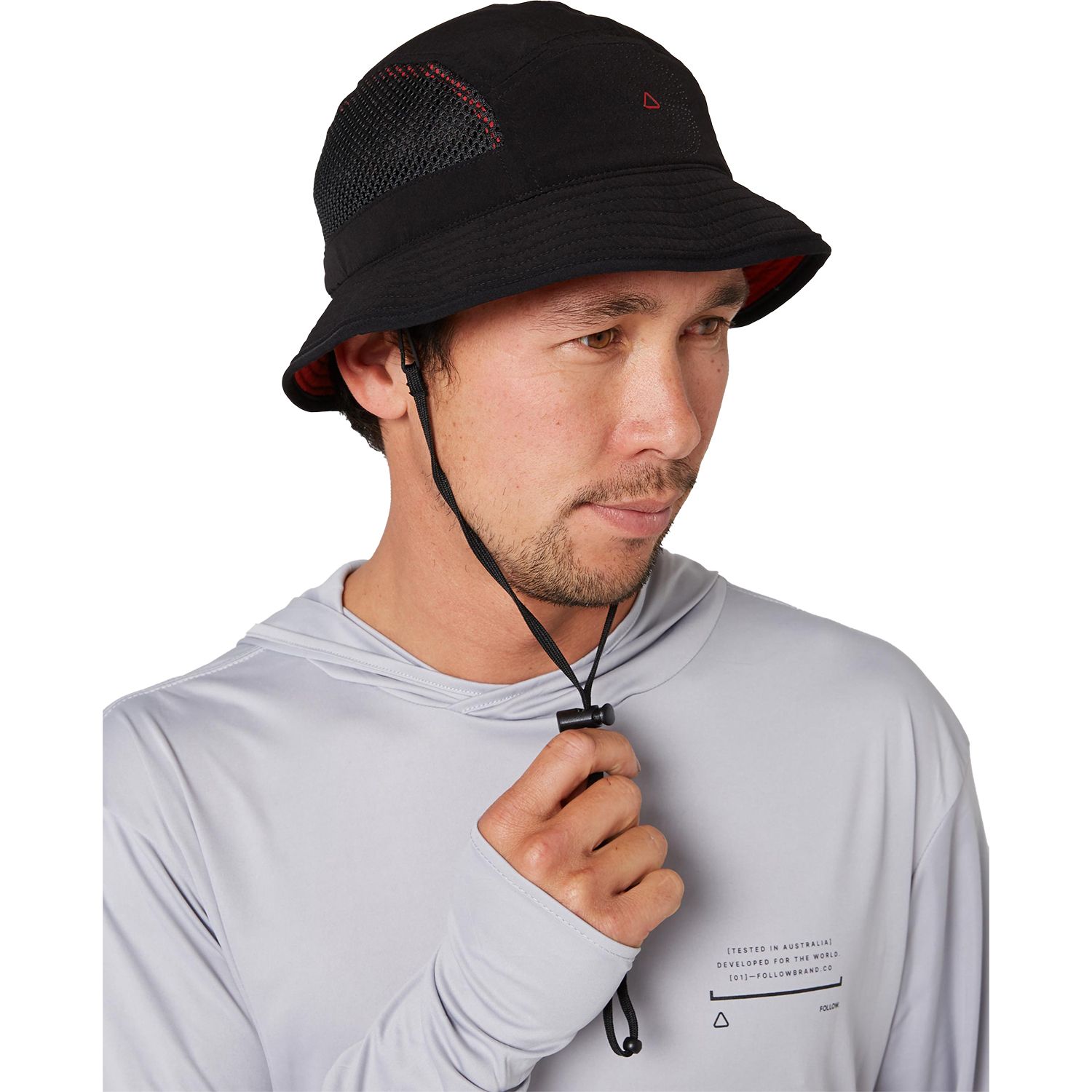 Side mesh panels and an elastic rear waist tie makes this Bucket Hat unique, with plastic fittings so they don't rust if used in salt water. Lose hats sometimes in waves? Follow added a red internal to make it visible. You didn’t know you needed this hat so badly until now.