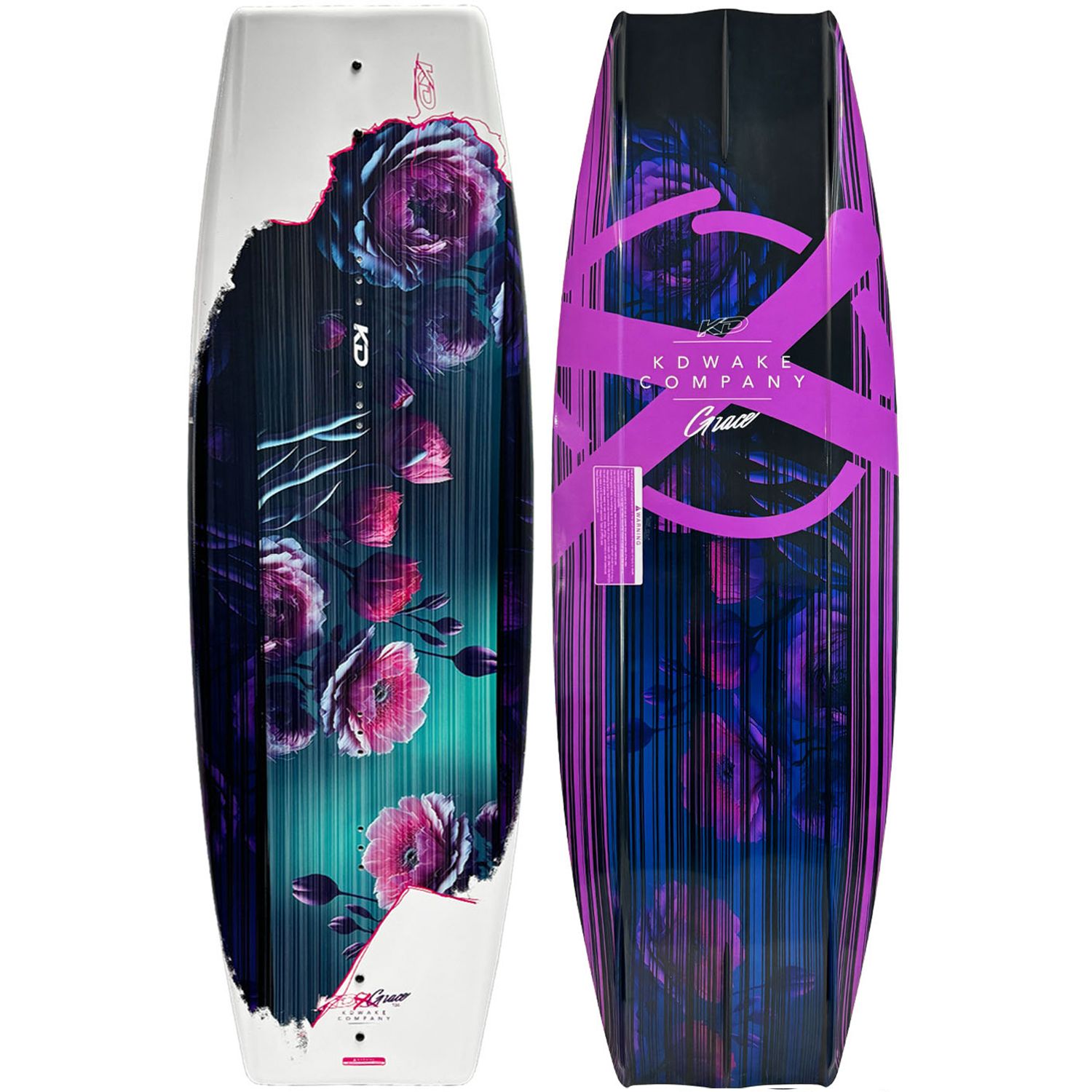Ladies say goodbye to wakeboarding one direction and getting caught outside the wake unable to cross back over! Introducing the KD Grace, with its innovative fin shape that’ll make your offside turn as smooth as your heel side. The secret to the Grace’s success is the dual moulded fins that start at the far edge of the board, assisting in the initiation of turn the moment the rider shifts their body position. The combination of continuous rocker and the variable edge rail that is rounded near the middle but sharpens at the tip and tail, gives riders complete control over the amount of bite they get from each turn without the worry of catching. Designed specifically for a woman’s lower centre of balance, with lighter foam core and fibreglass lay-up the Grace makes ticking off the fundamentals of wakeboarding effortless, saving time and energy for the more advanced manoeuvres.