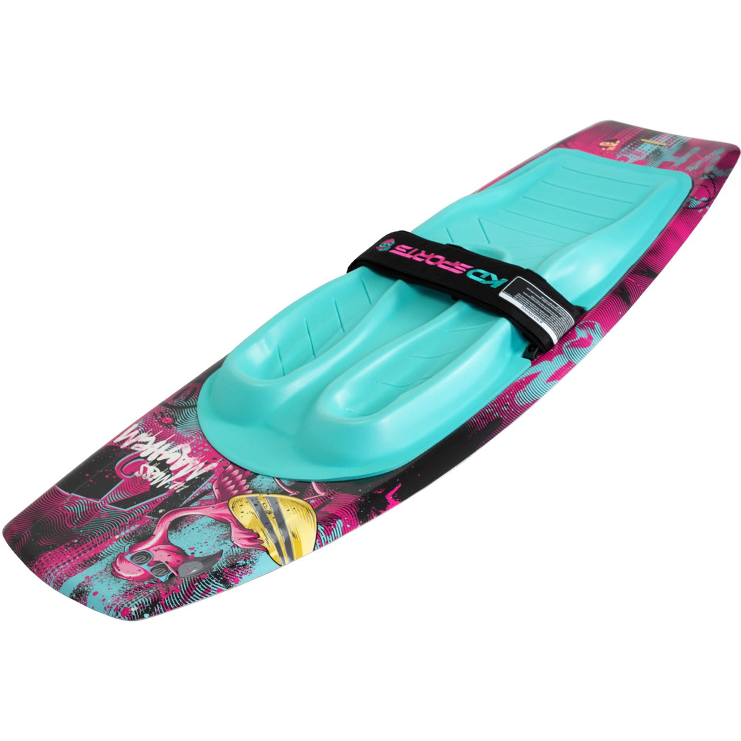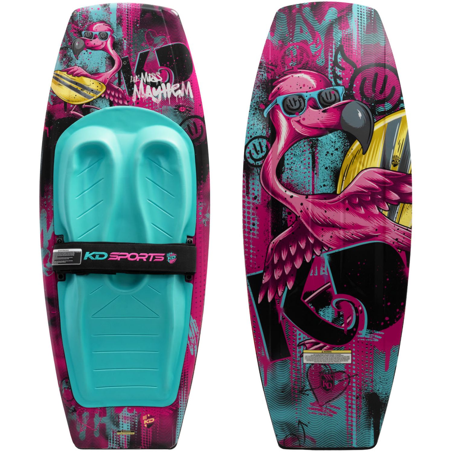 Look out ladies, the Miss Mayhem comes fitted with KD’s Signature tow handle hook to take the strain out of deep water starts. Free from moulded fins which create unnecessary drag, the Miss Mayhem’s unique outline delivers superior edge hold thanks to an improved contact with the water. The Miss Mayhem features ‘Diamond Technology’ that generates lift by forming pockets of air under the front and back of the board, for the lowest drag coefficient. Not content until it was perfect KD rolled and fluted the Miss Mayhem’s tail, reducing the amount of wear/tear on the board and creating the cleanest, most consistent kick off the wake. An ergonomic pad featuring specific moulded zones for tibia/fibula and a raised section to give support under the legs, taking pressure off the ankles make the Miss Mayhem the complete package!